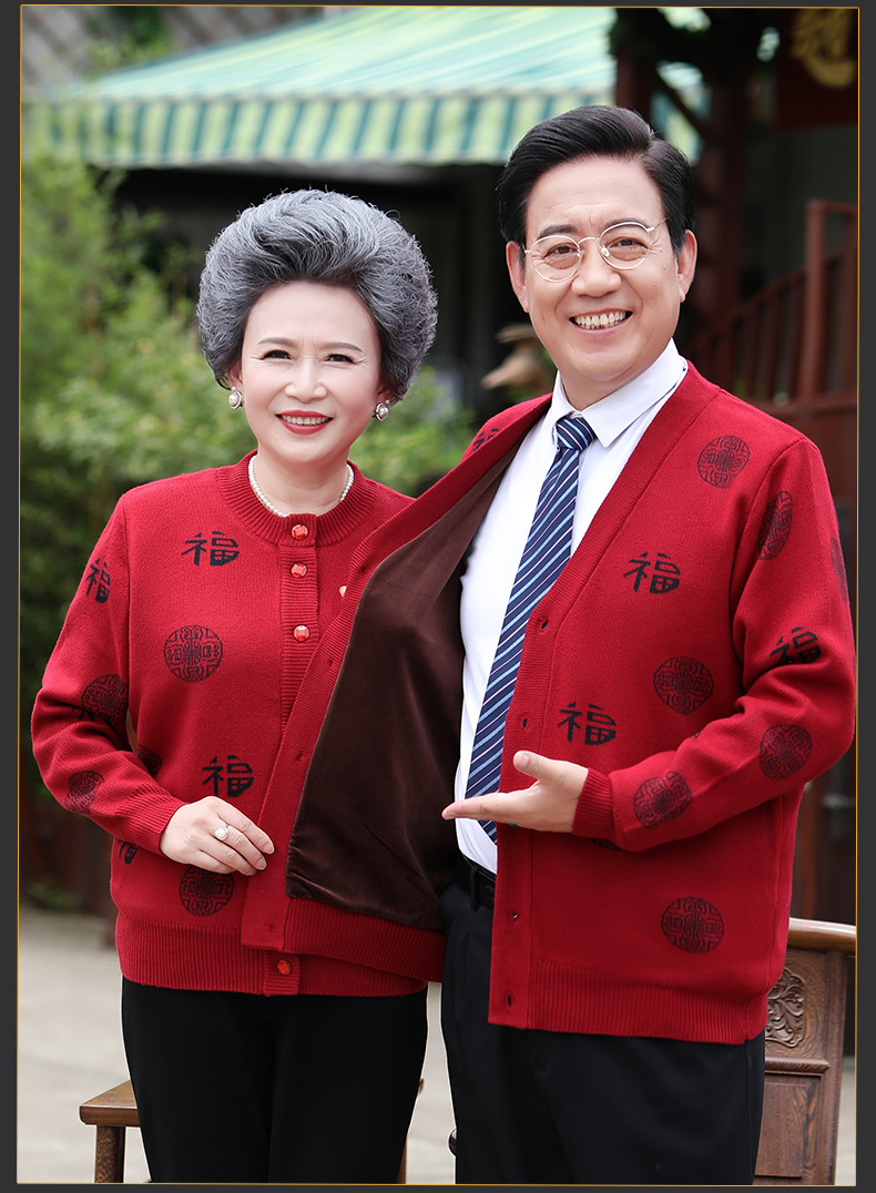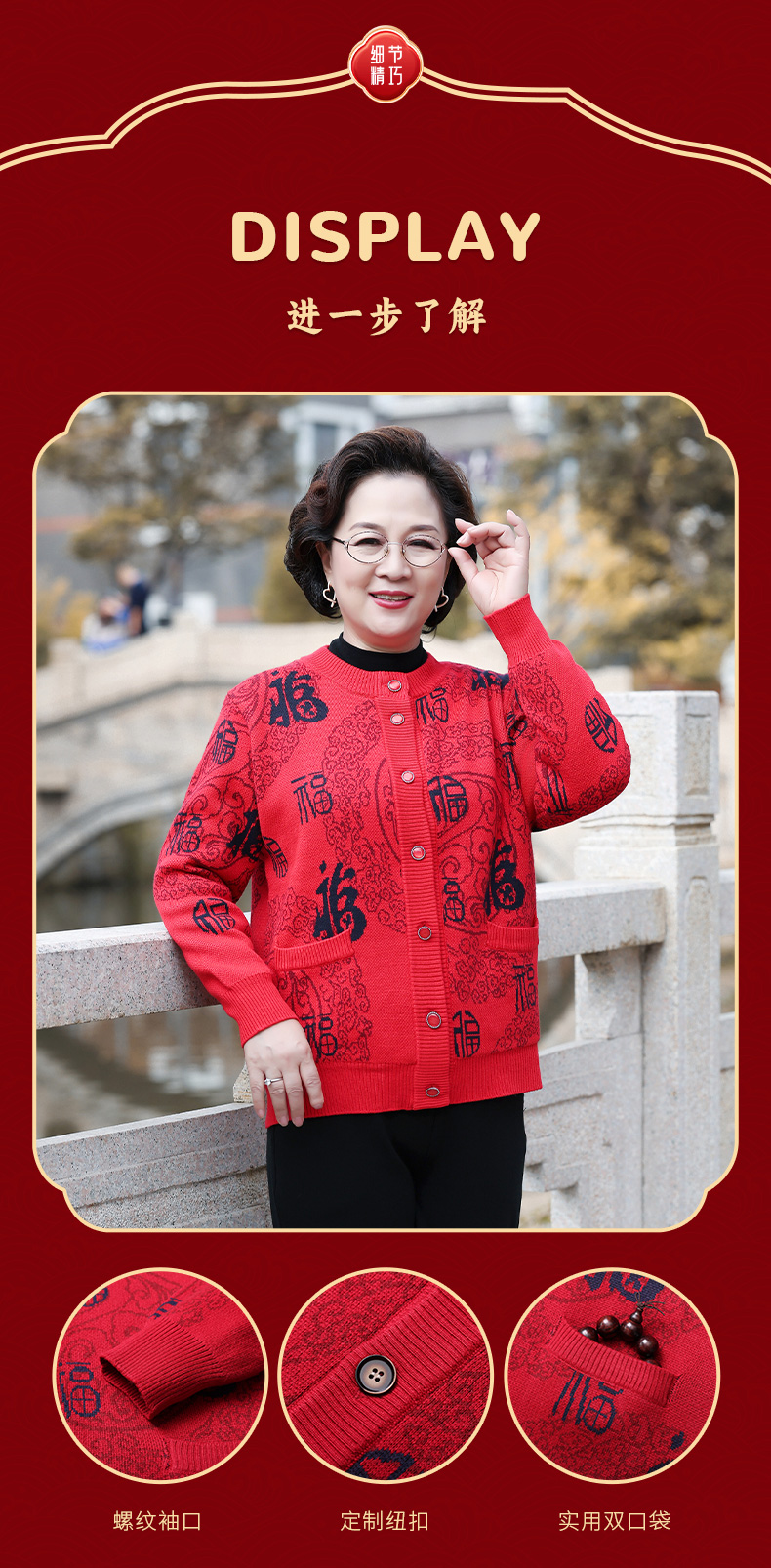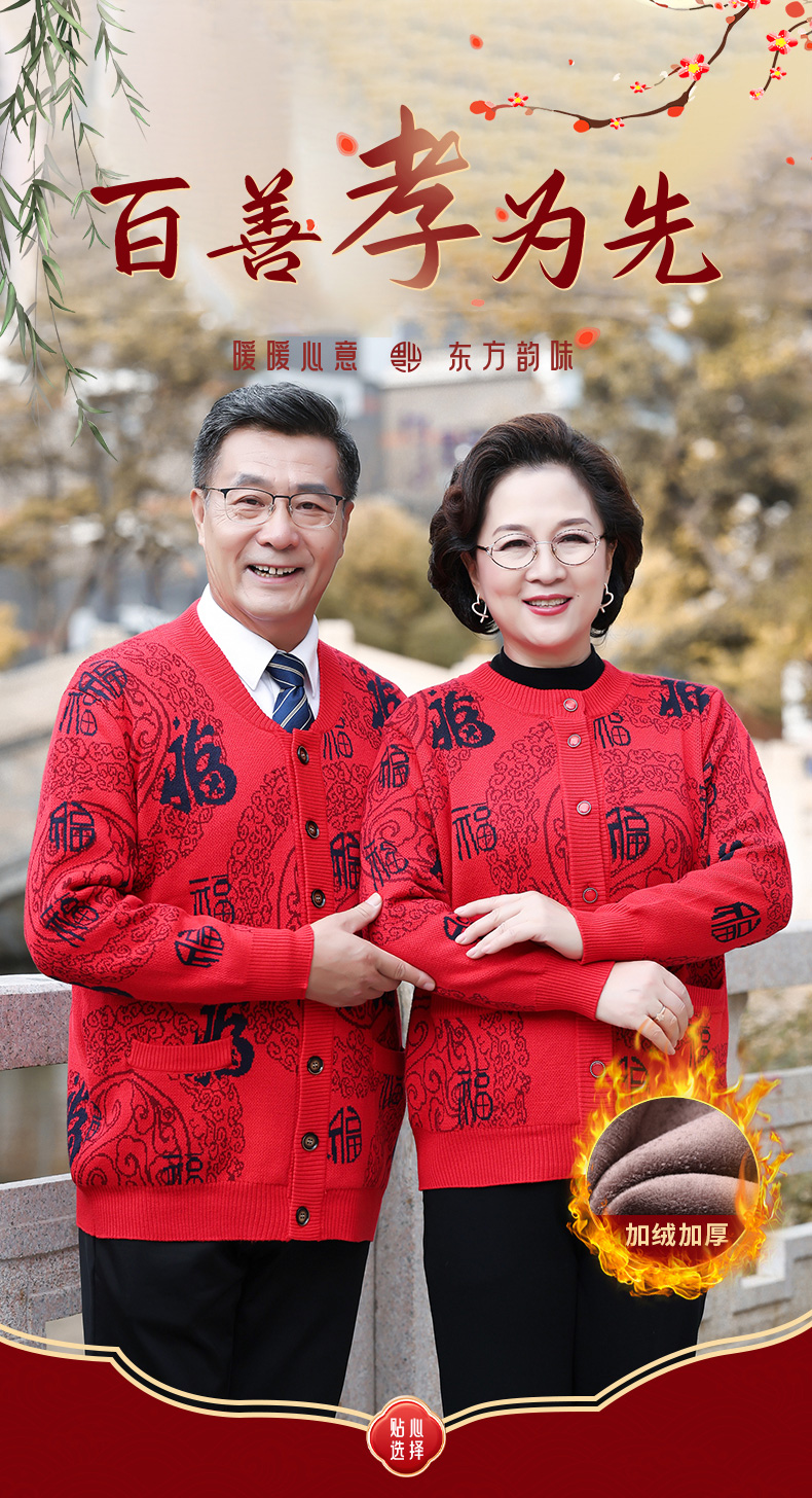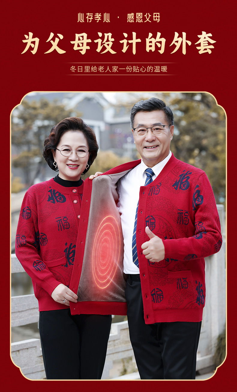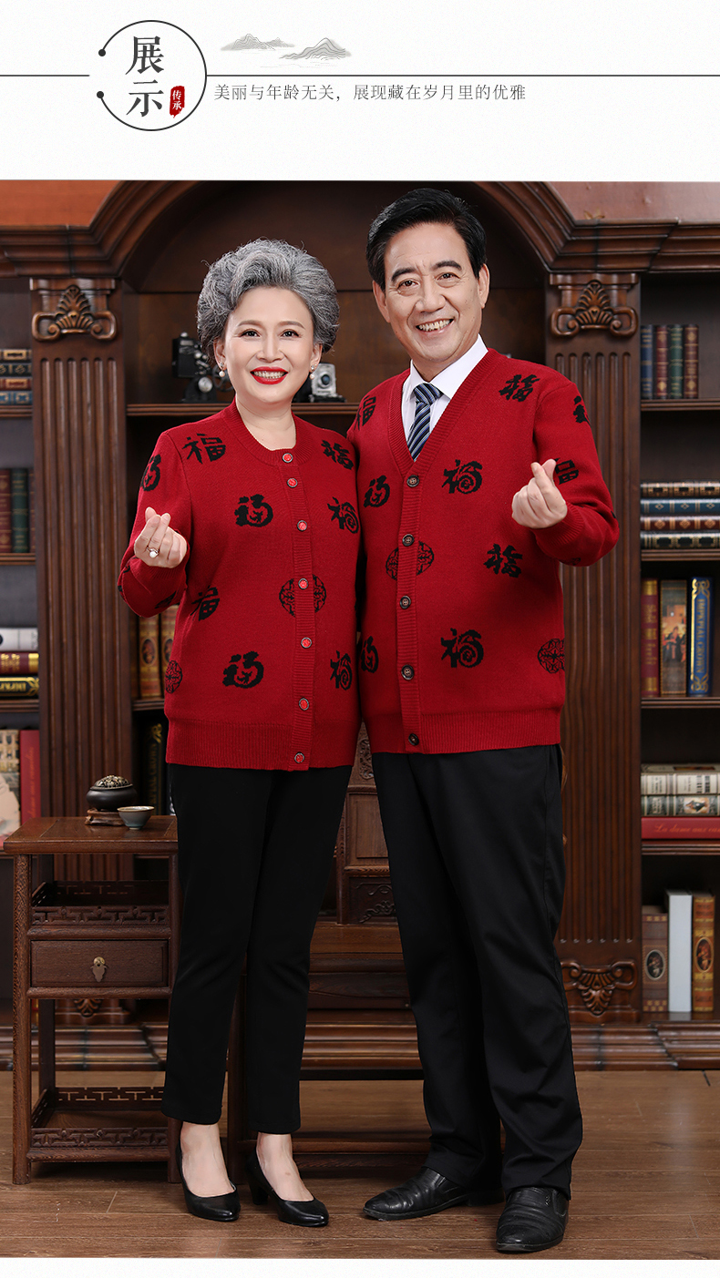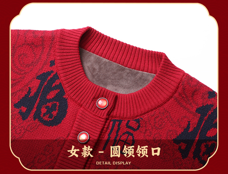 优选丨明星同款父母新年鸿福开衫/新年全身福字套头红色毛衣