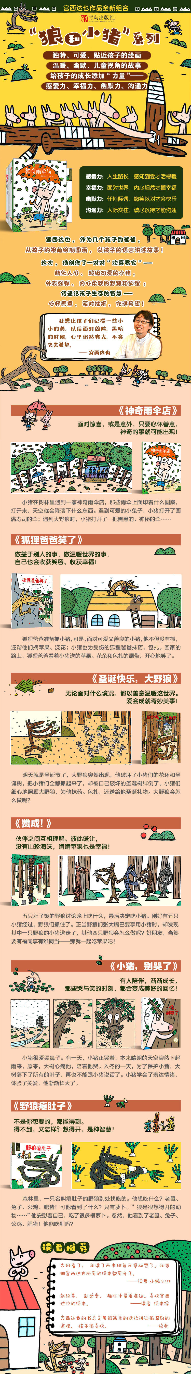 宫西达也的智慧绘本:狼与小猪系列(平装《神奇雨伞店》《野狼瘪肚子》《圣诞快乐,大野狼》《狐狸爸爸笑了》《小猪,别哭了》《赞成!》共6册)