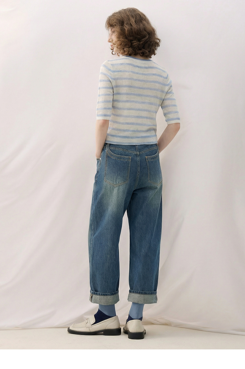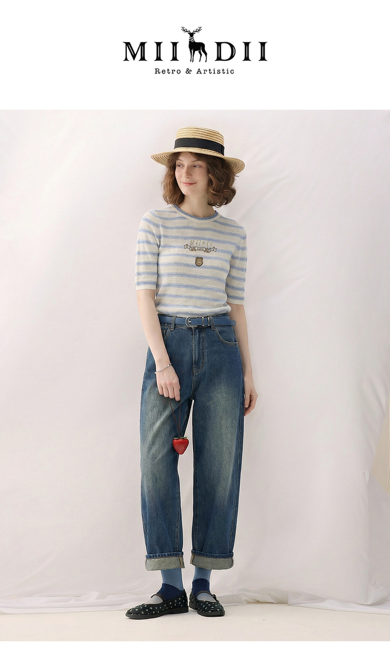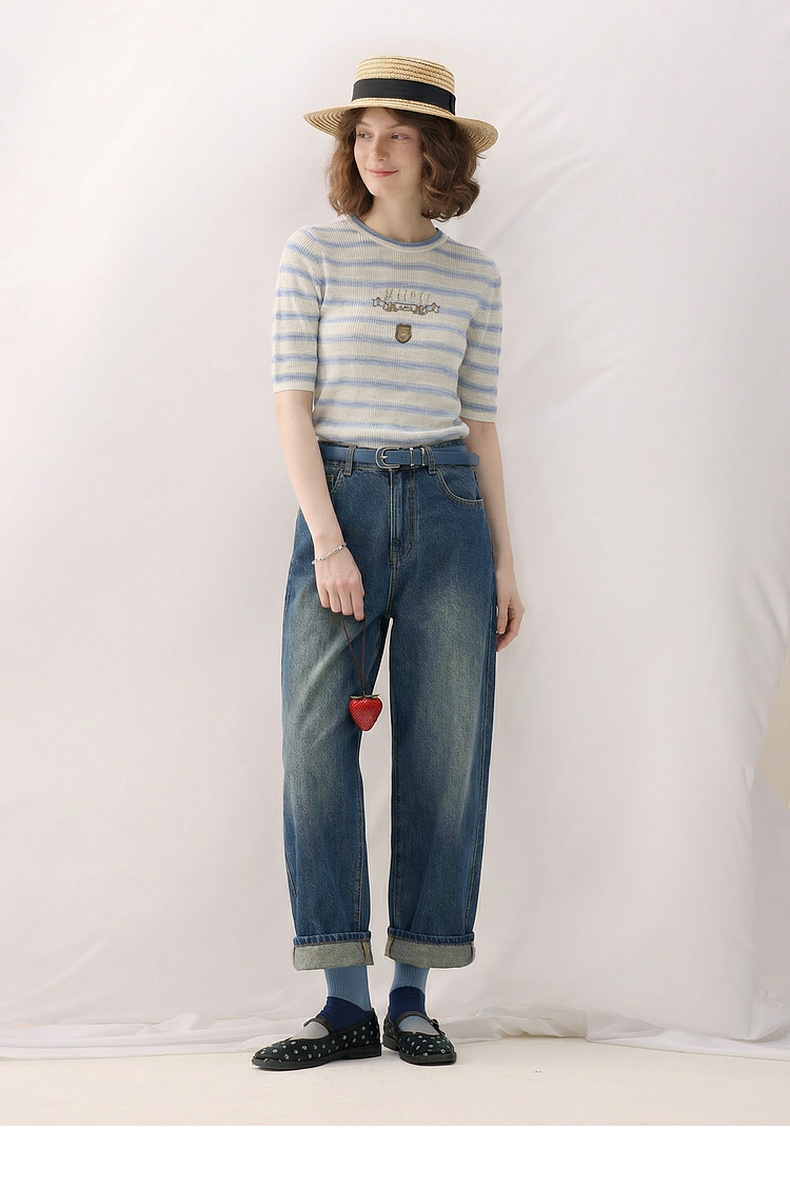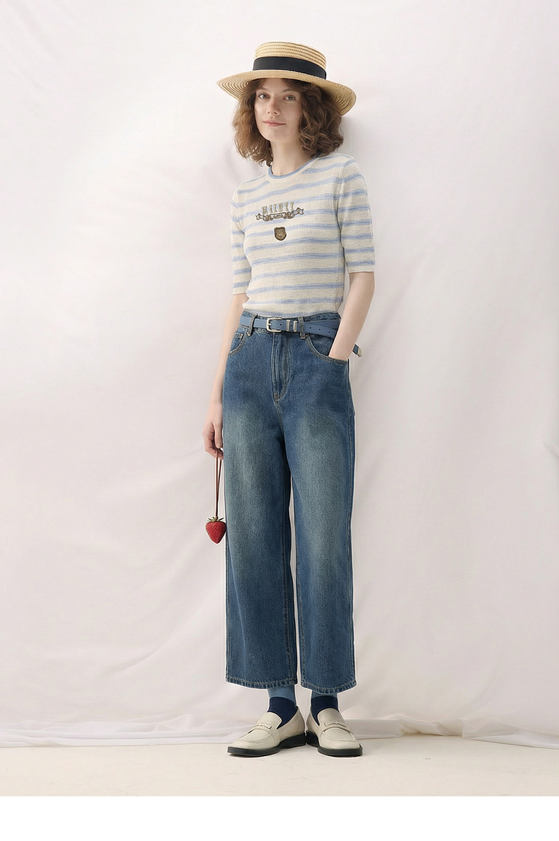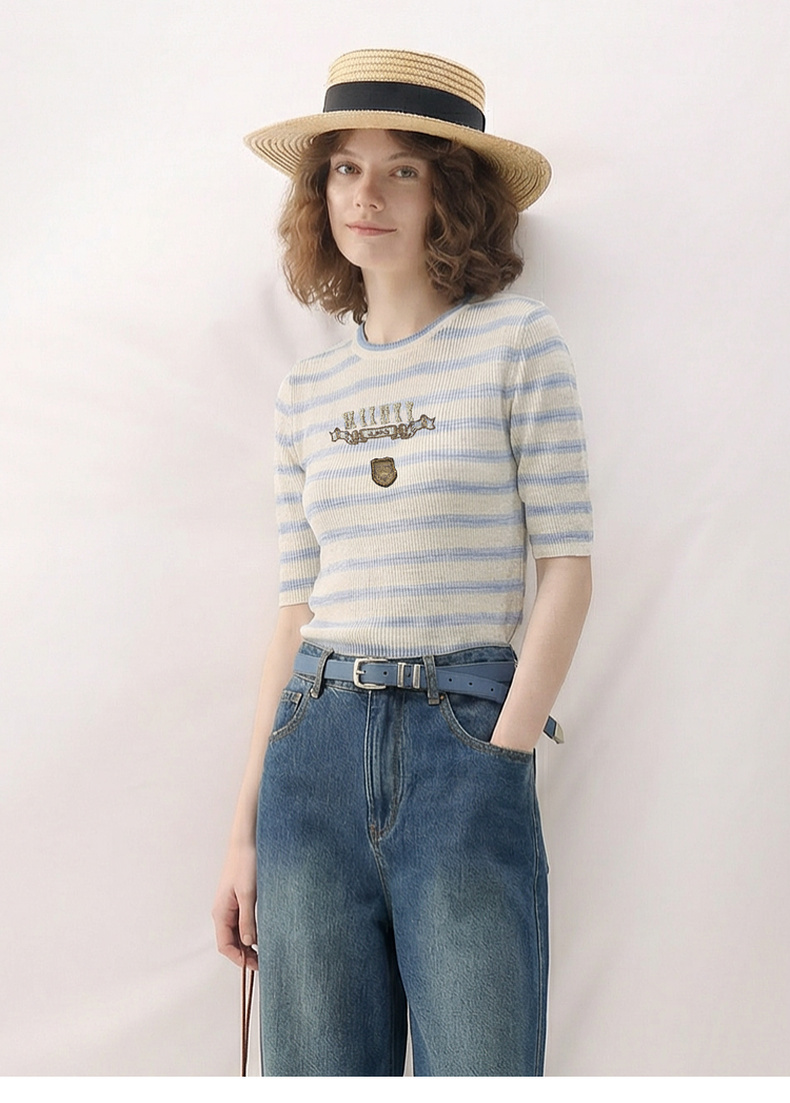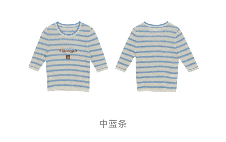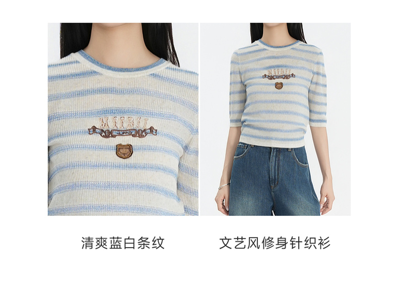 谜底套头针织衫短袖2026春季新品学院风条纹短款上衣女265MZ5029