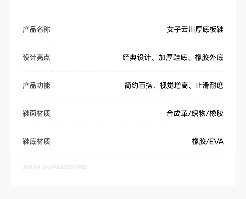 超级安踏云川 | 板鞋女款秋冬休闲鞋百搭运动鞋女鞋122548003U