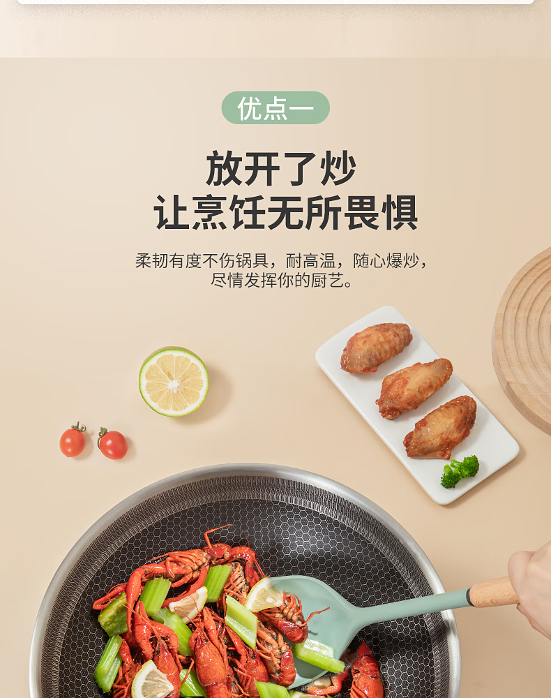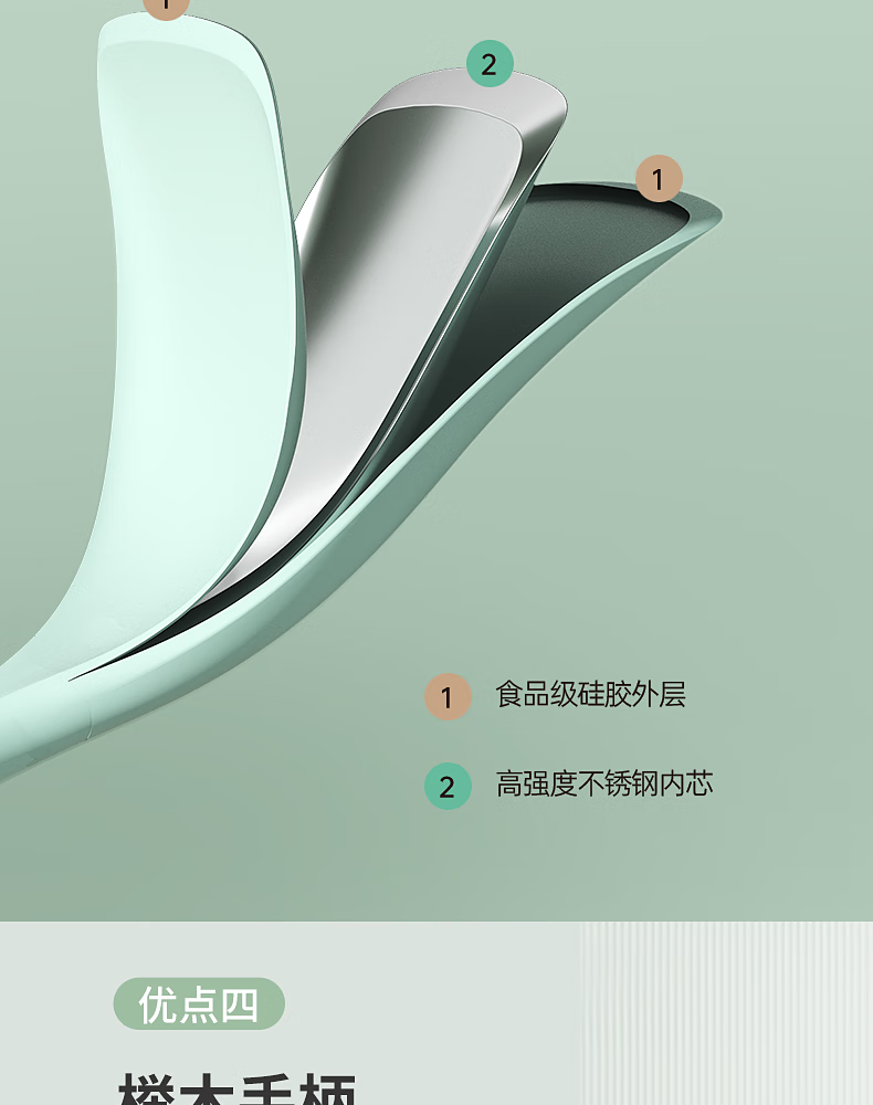 康巴赫(KBH)静厨防烫榉木硅胶铲勺