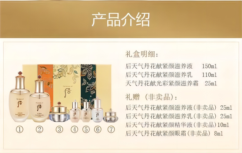 The history of whoo/后天气丹花献光彩紧颜系列礼盒7件套 嗨购珠海