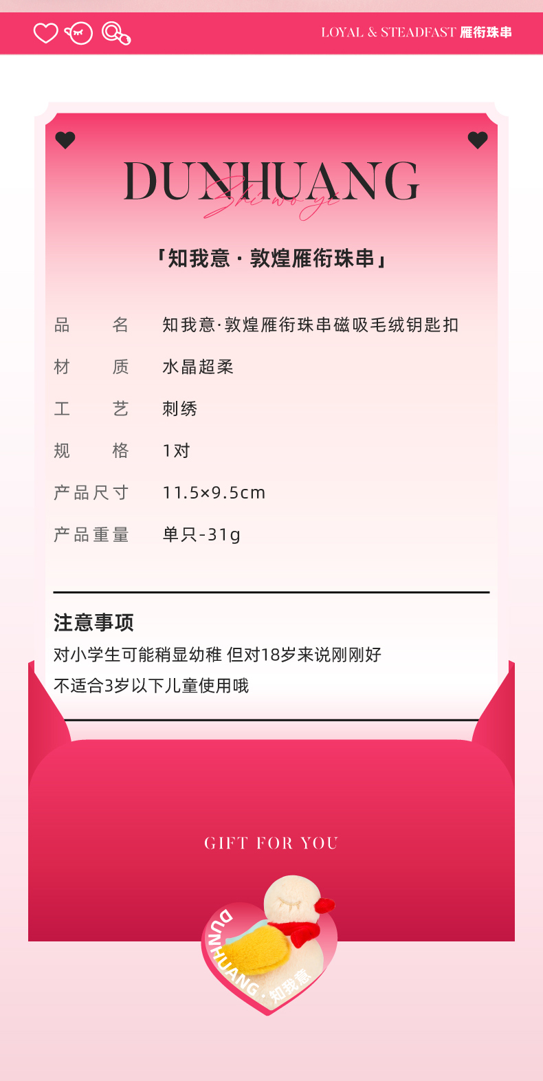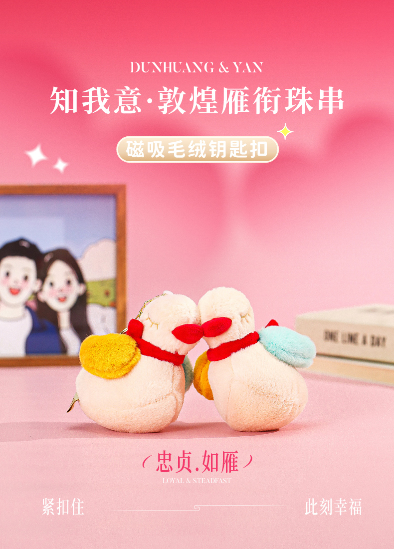 敦煌研究院【知我意敦煌雁衔珠串磁吸毛绒钥匙扣】小挂件情侣钥匙扣
