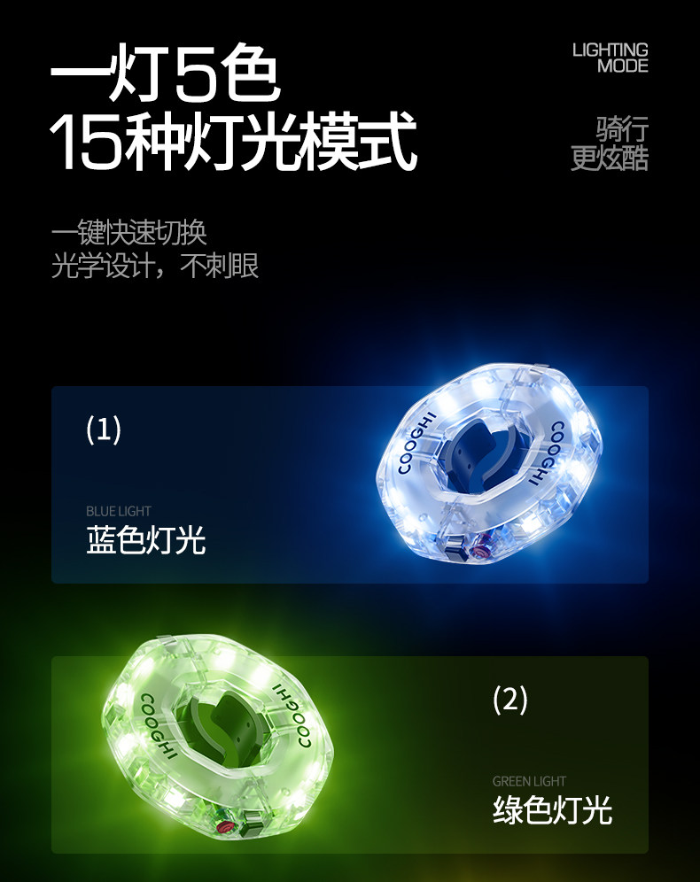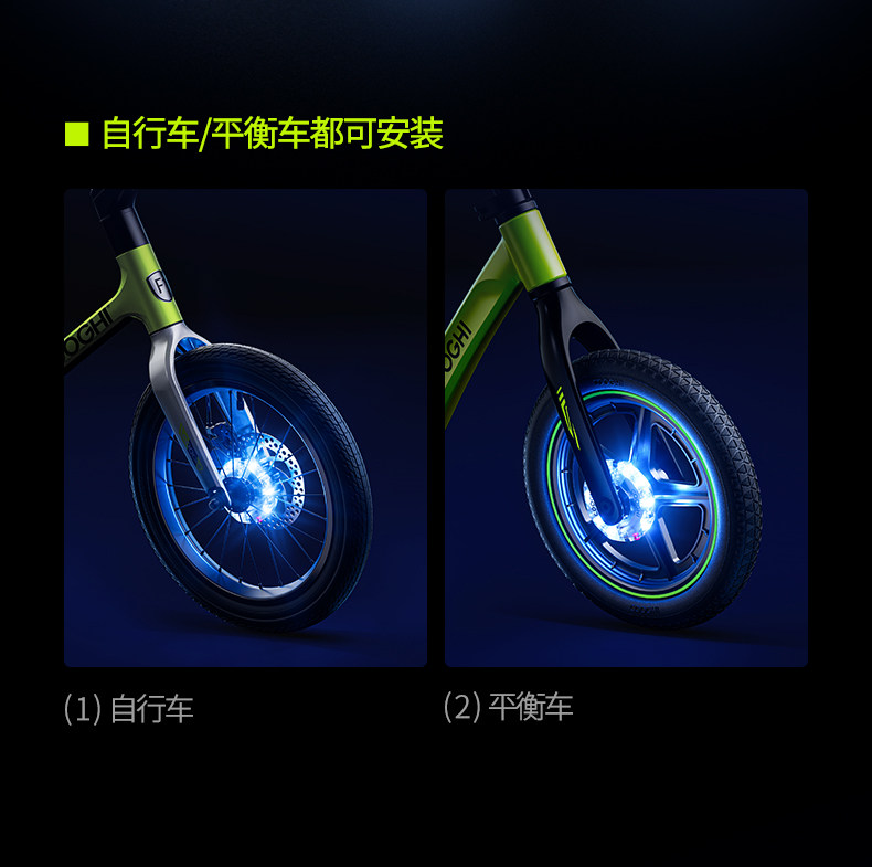 【新品上市】COOGHI酷骑儿童自行车平衡车花鼓灯夜骑发光车轮灯风火轮usb充电