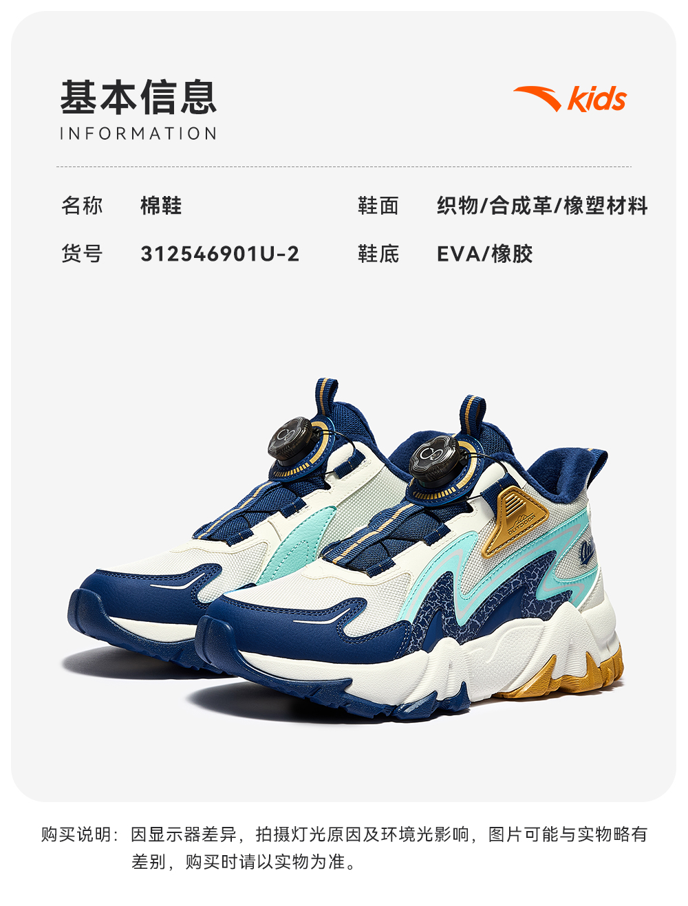 超级安踏儿童棉鞋秋冬保暖加绒靴子旋转扣高帮运动鞋312546901U
