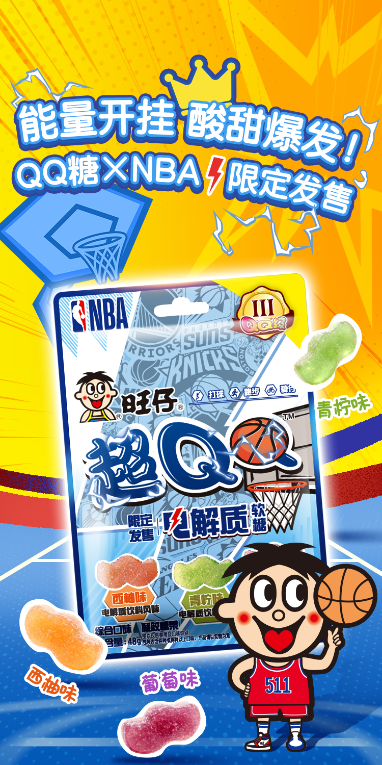 旺仔×NBA联名版超QQ软糖 多口味有嚼劲