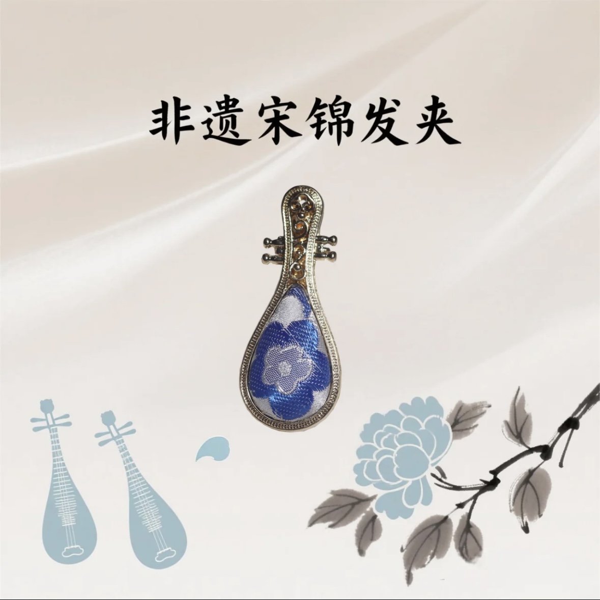 【品名】宋锦琵琶发夹