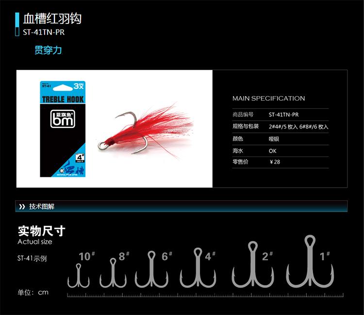 蓝旗鱼盒装三本钩进口鱼钩血槽钩 路亚饵亮片钩锚钩假饵用钩