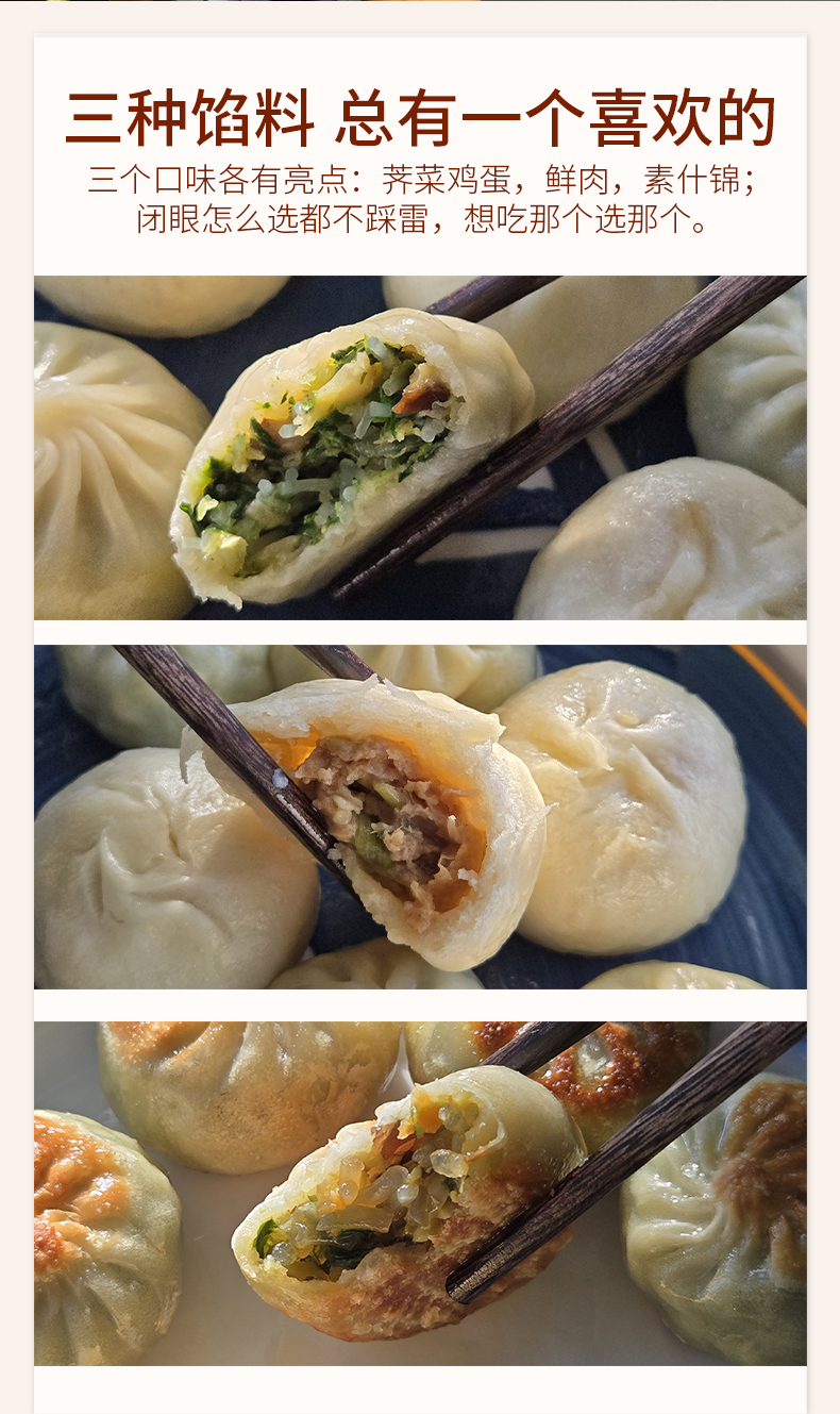 优选丨丰富早餐速食包子3种口味荠菜鸡蛋包素什锦包鲜肉包150g*10包