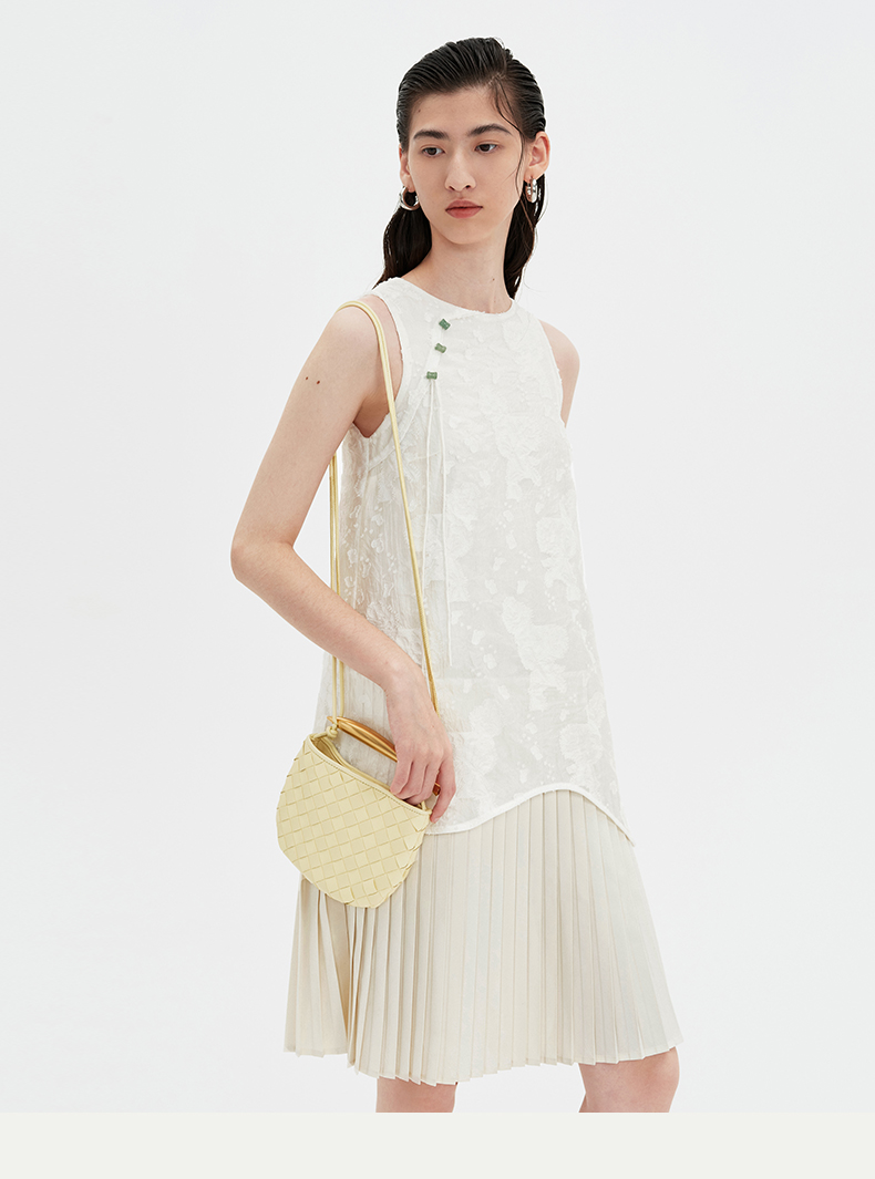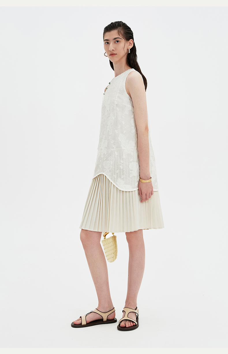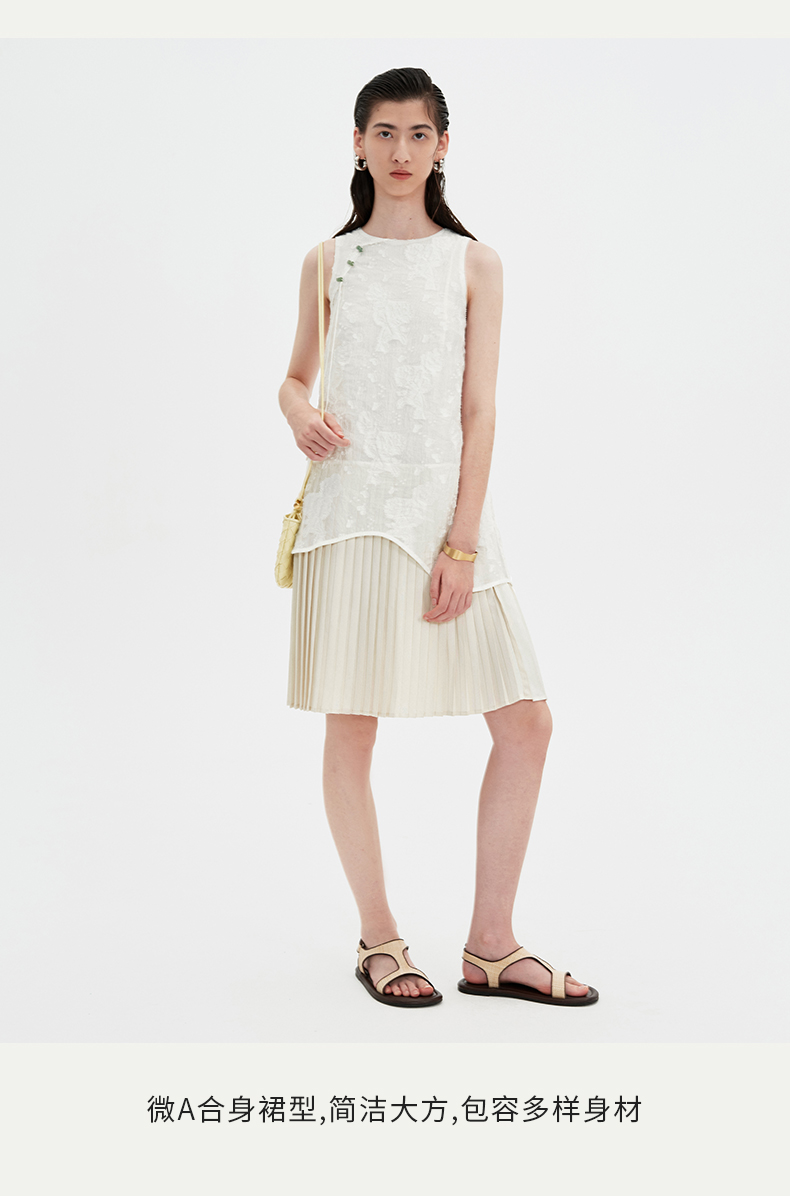 SELFWHO做旧新中式连衣裙2024新款夏拼接国风设计感百搭气质裙子