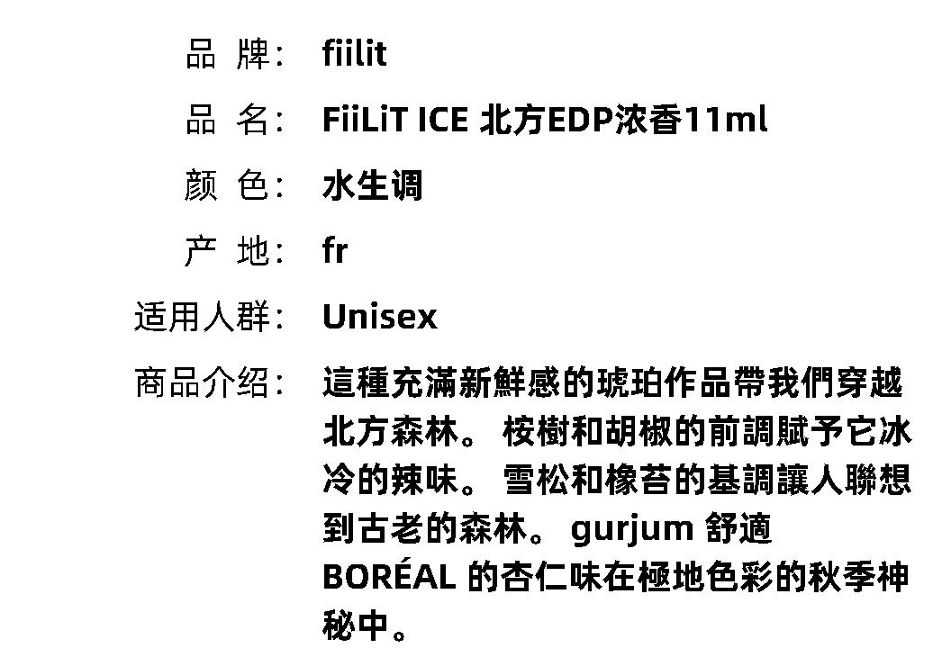 【保税仓】FiiLiT冰北方EDP浓香11ml可补充