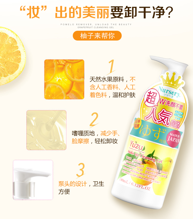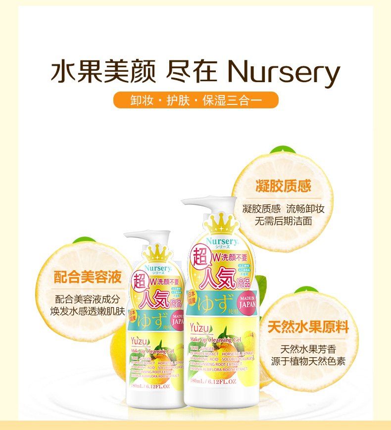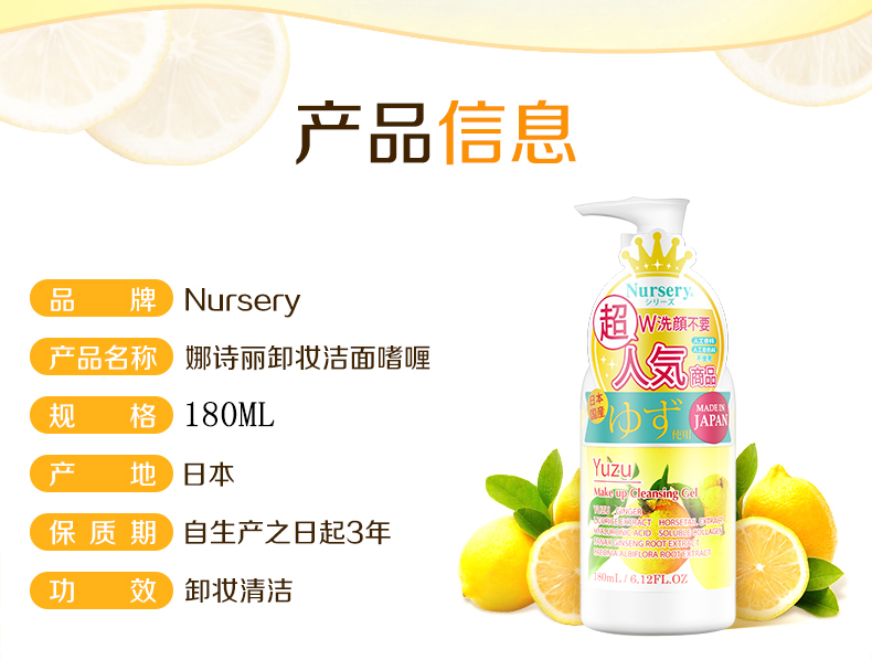 【保税仓】Nursery娜斯丽柚子卸妆乳啫喱180ml/瓶