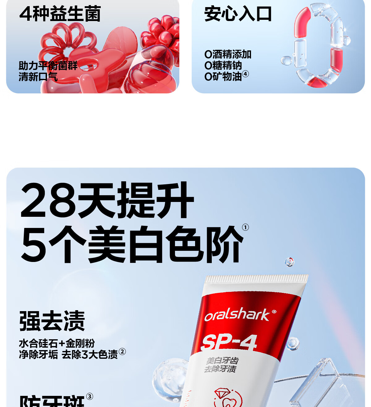 参半 oralsshark臻白酵素牙膏 小苏打160g+西柚酵素100g+龙井酵素100g