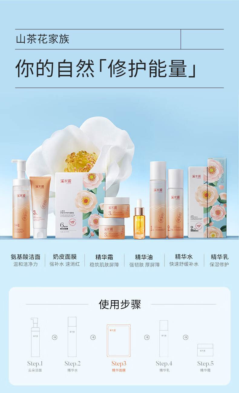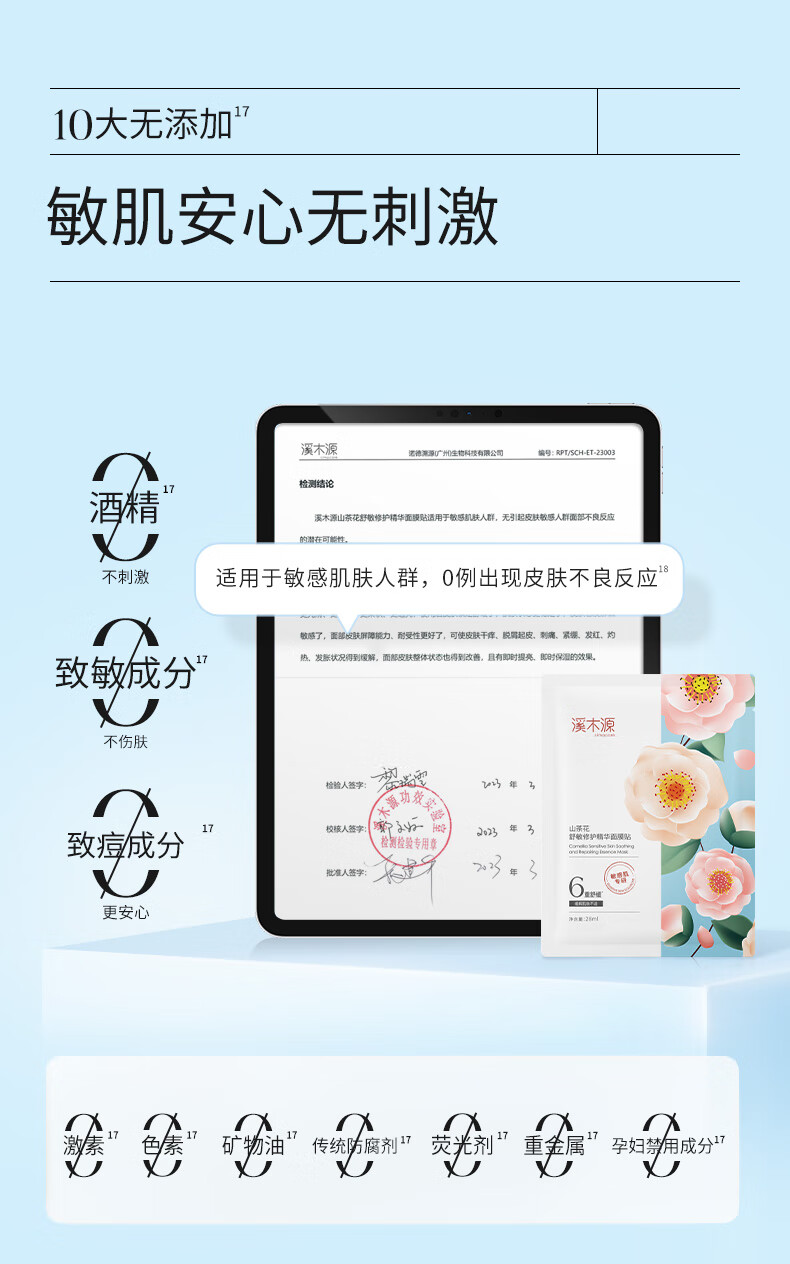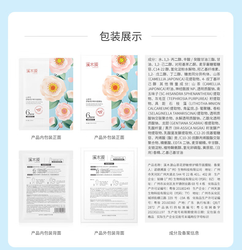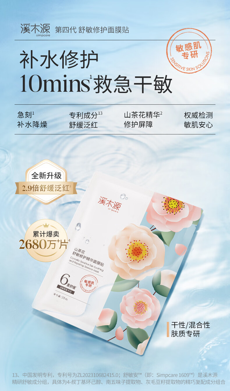 溪木源 山茶花舒敏修护精华面膜贴28ml*10片 XMY-205