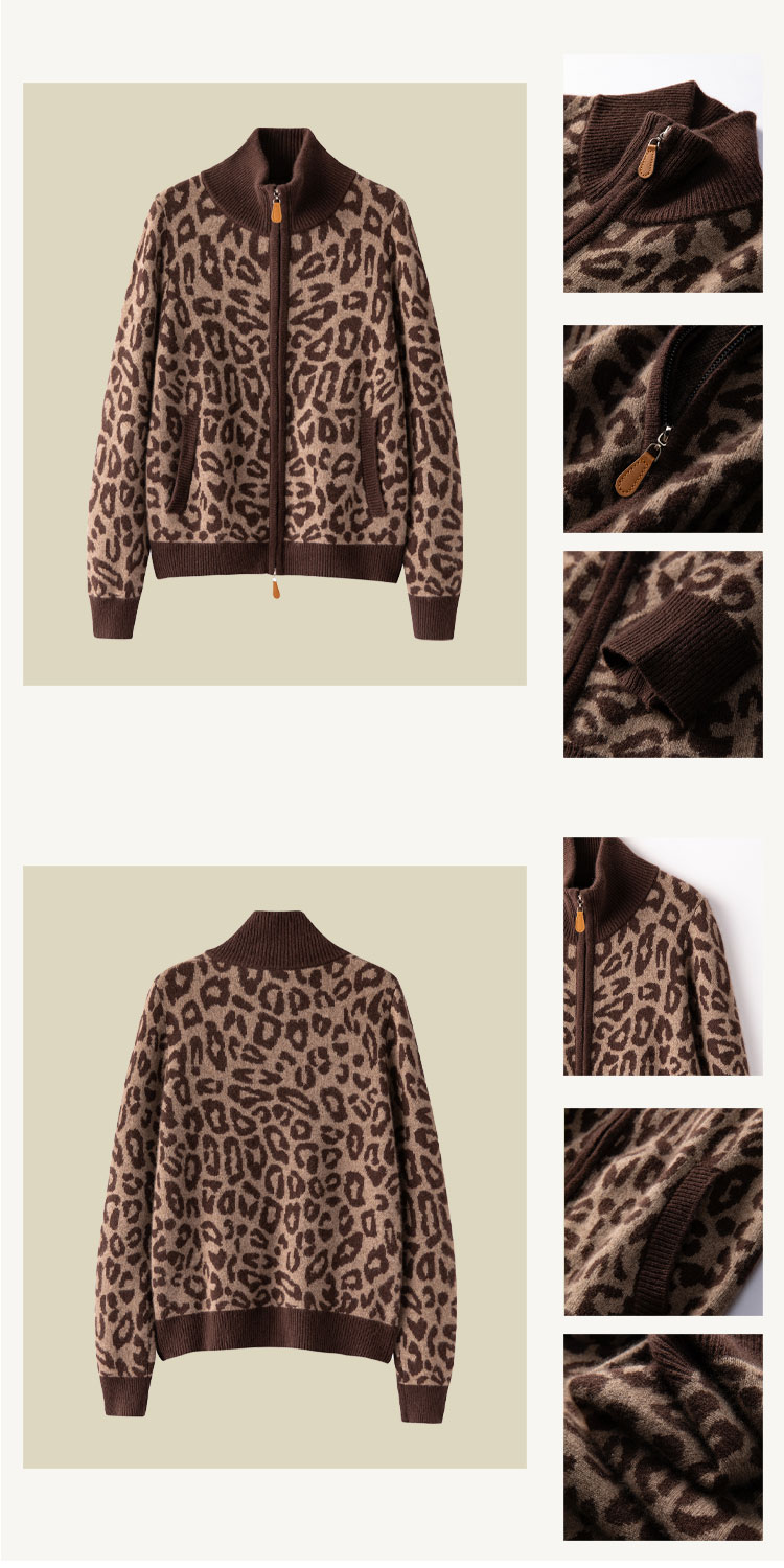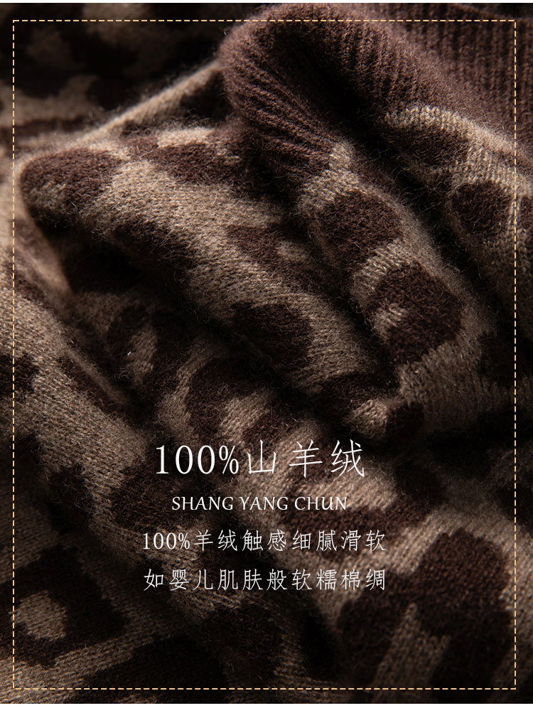 尚羊纯 重磅加厚~100%山羊绒 显瘦 针织外套半高领 ~高级感豹纹