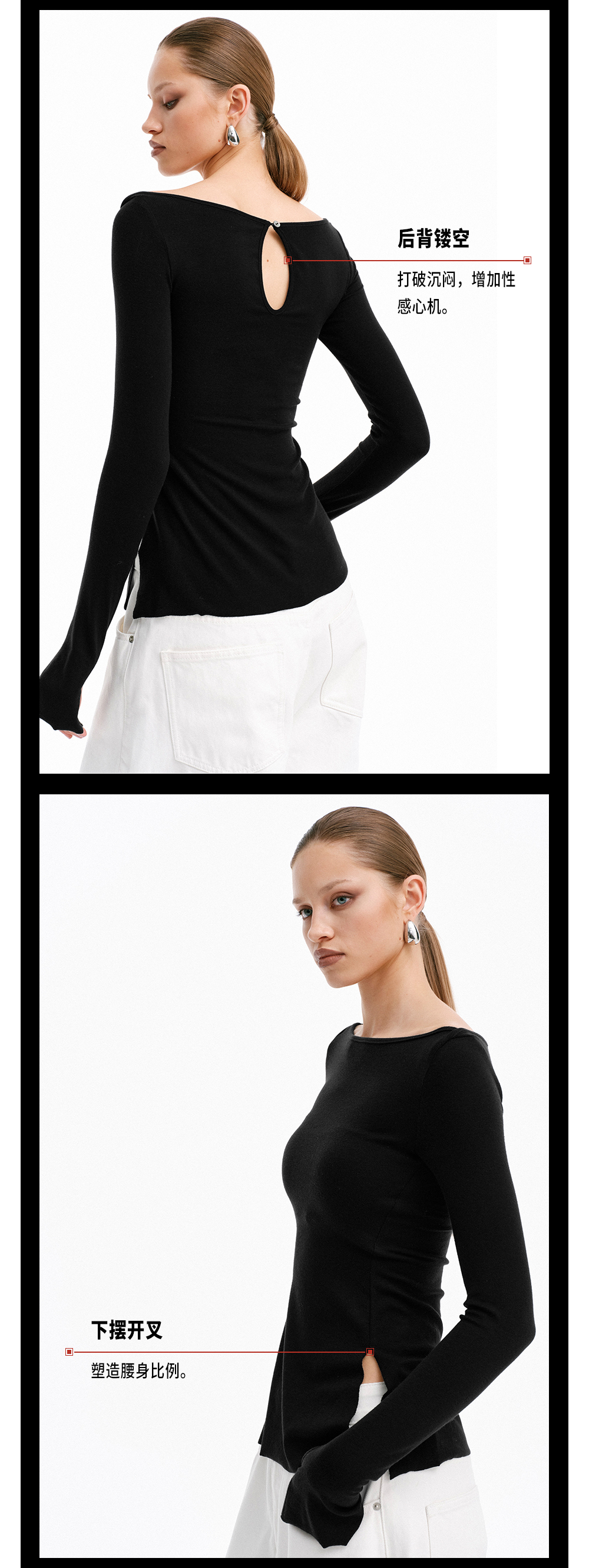 TR她热 锐舞派对 黑色针织拼色镂空弹力设计感辣妹时髦上衣打底衫