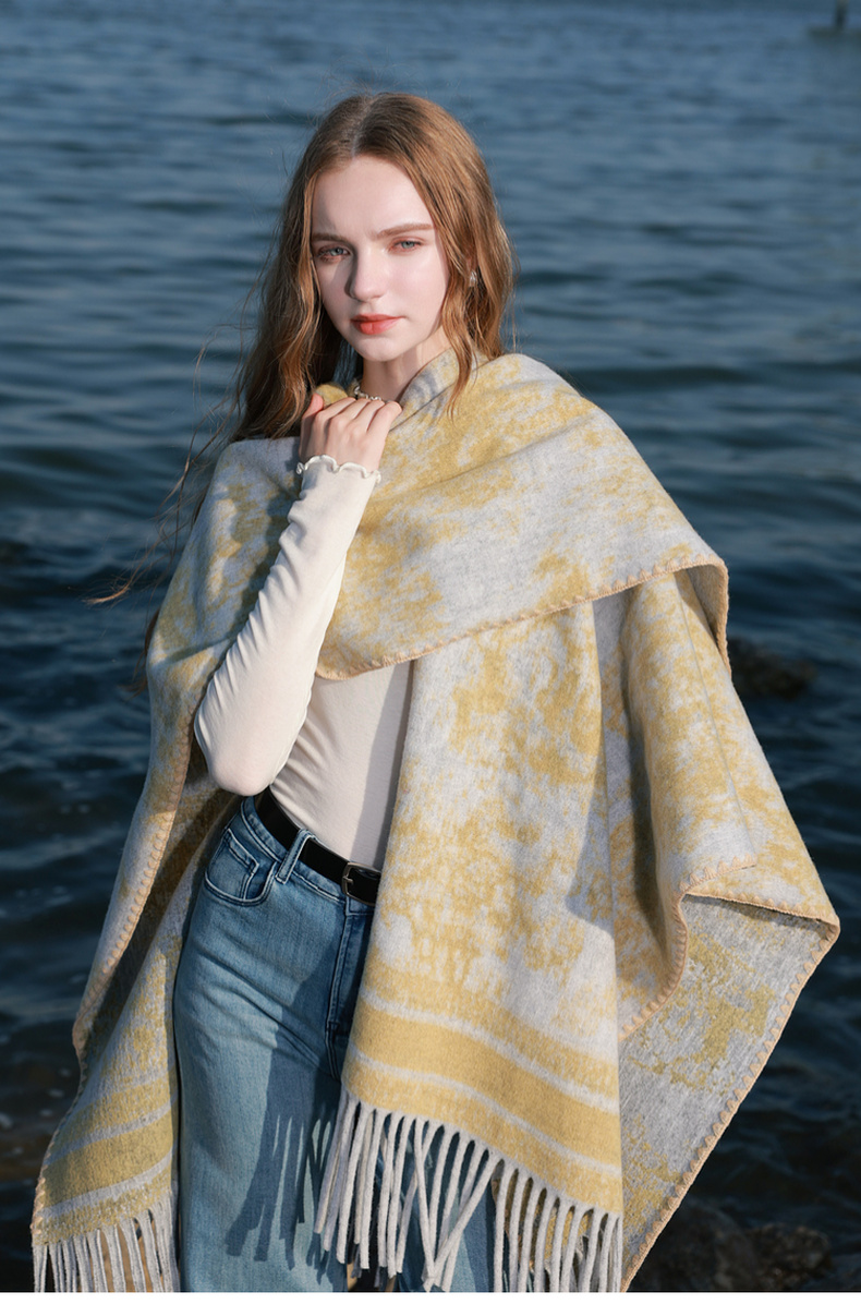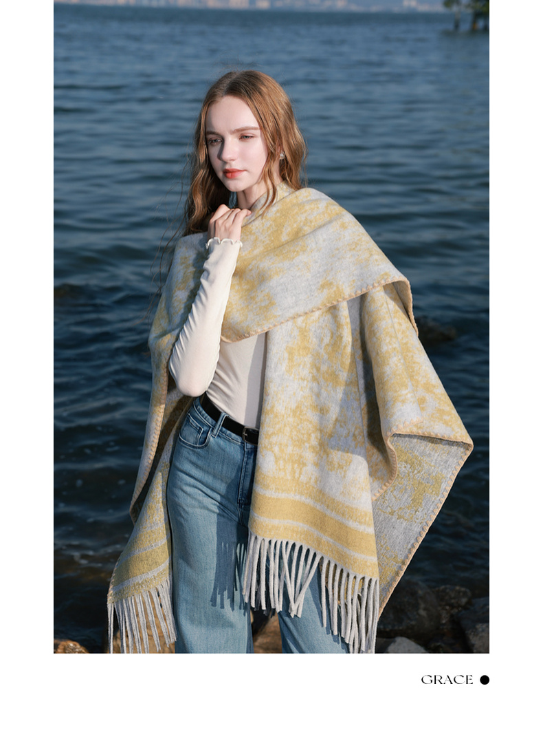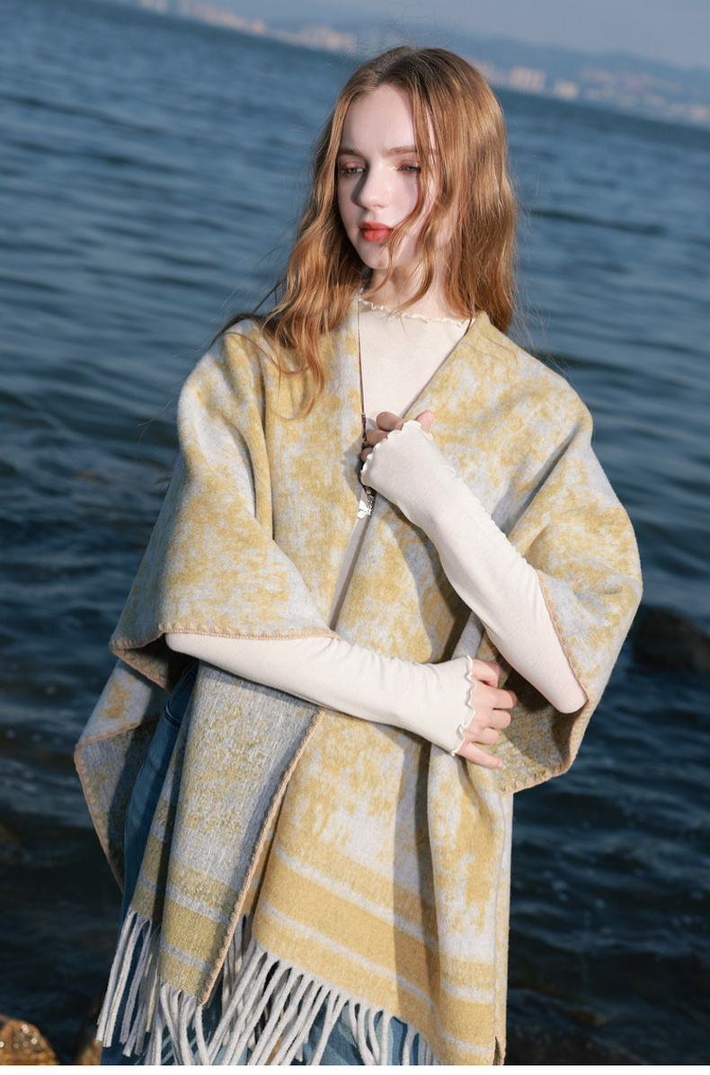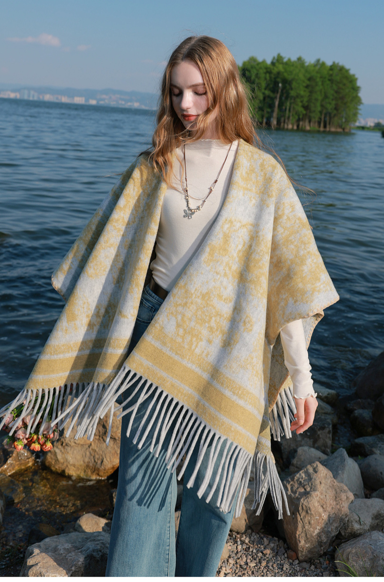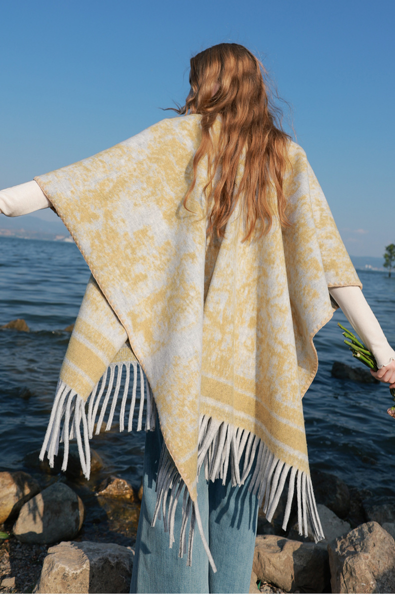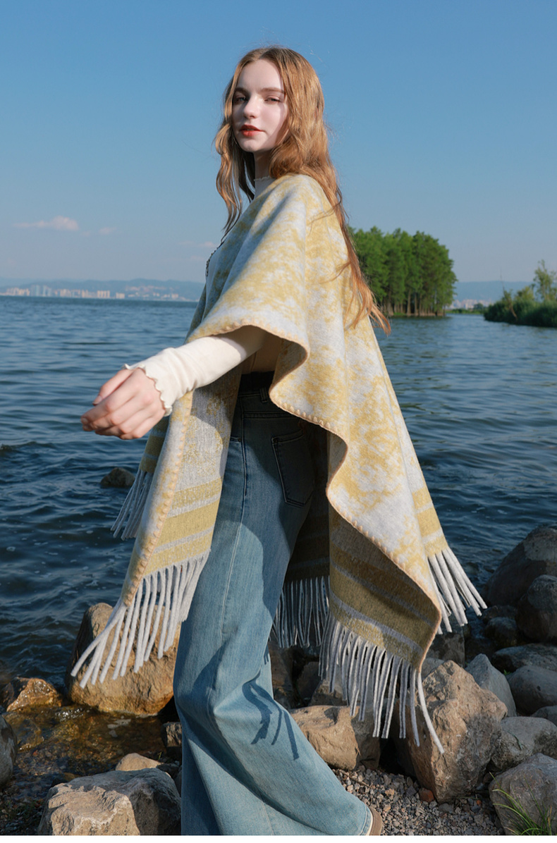 三彩2025新款游牧民族风波西米亚大廓形外搭针织披肩流苏保暖