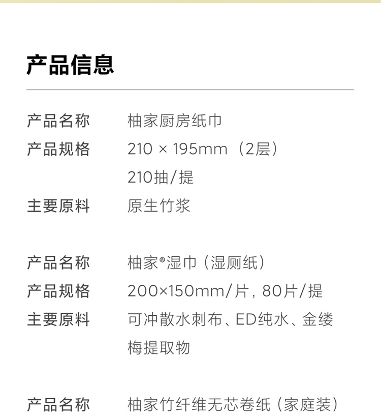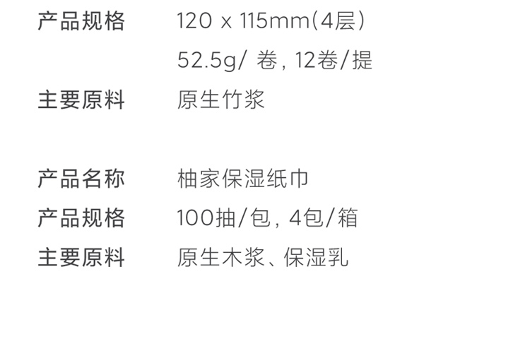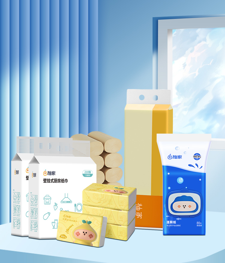 【组合装】柚家 家居清洁大礼包 (厨房纸巾*1提+无芯卷纸12卷+湿厕纸*1提+柔纸巾)