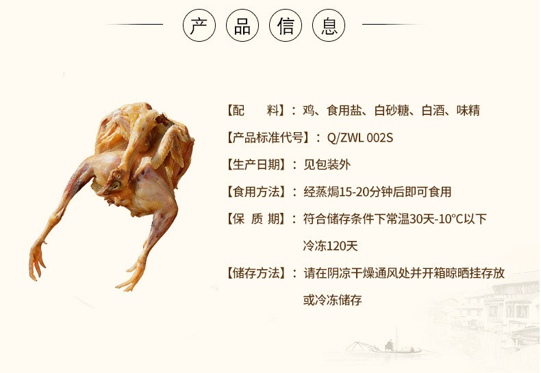 万隆风鸡 (1年以上老母鸡) 非真空 两只装 以老鸡入馔,配料简单,肉质紧实如丝,咸香深植肌理