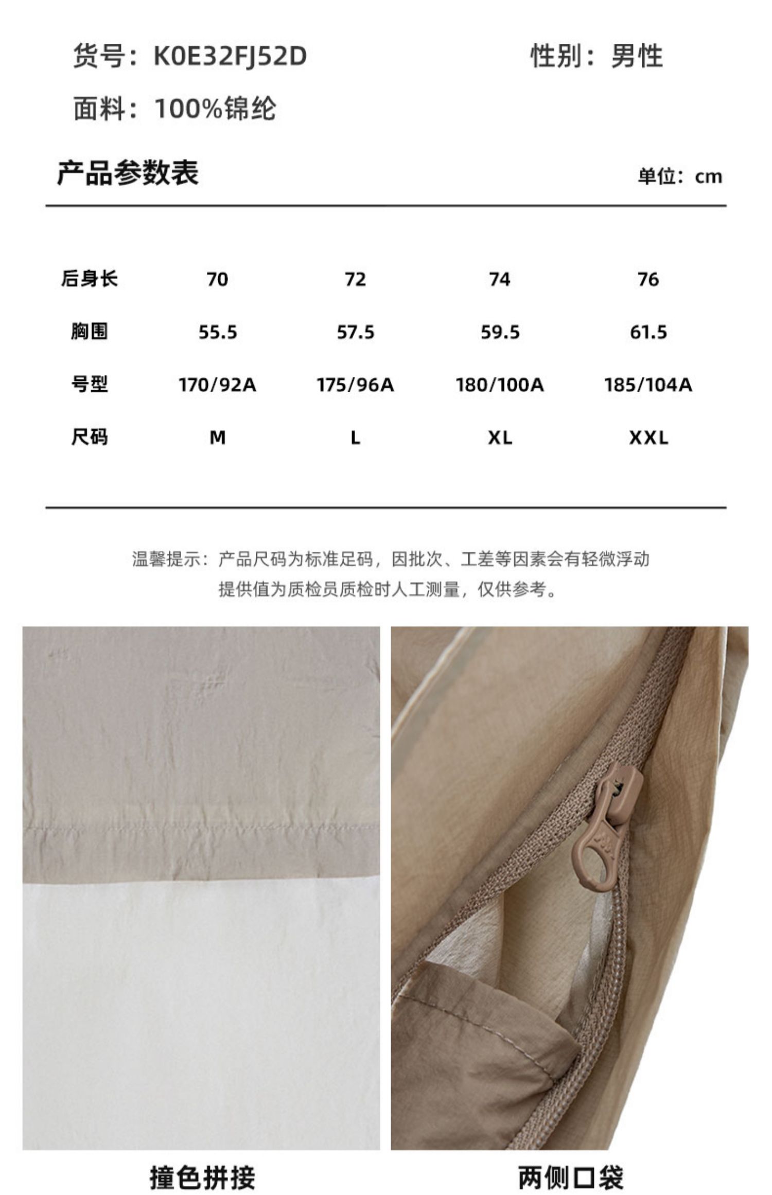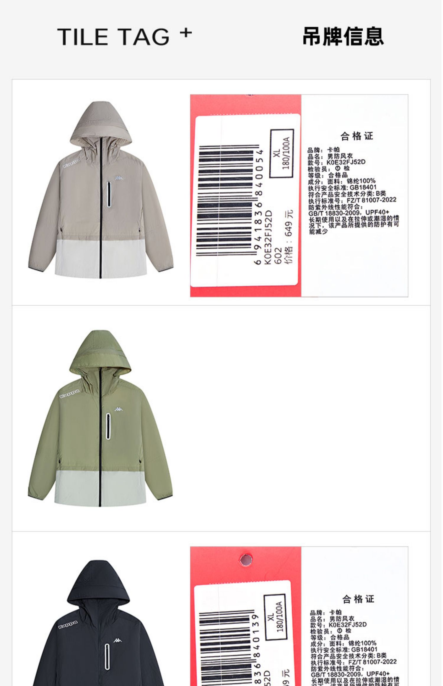 kappa卡帕背靠背女款2024新款夏季薄款运动夹克外套男款休闲上衣K0E32FJ52D