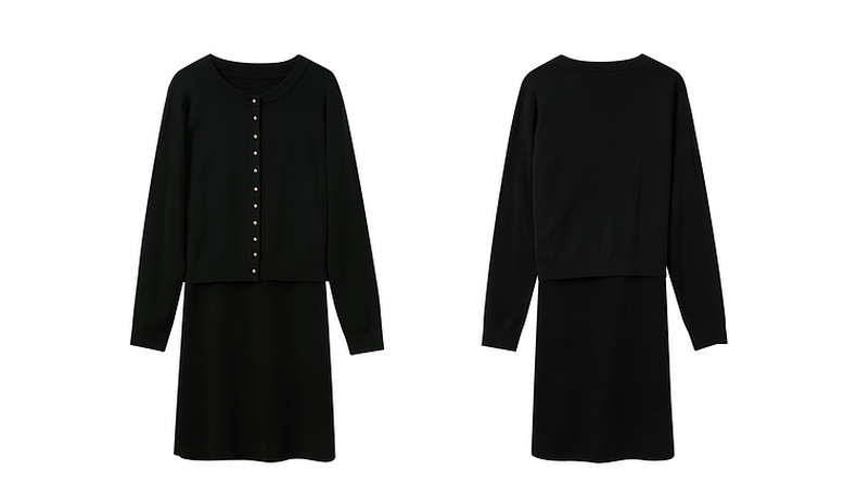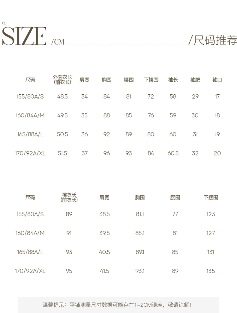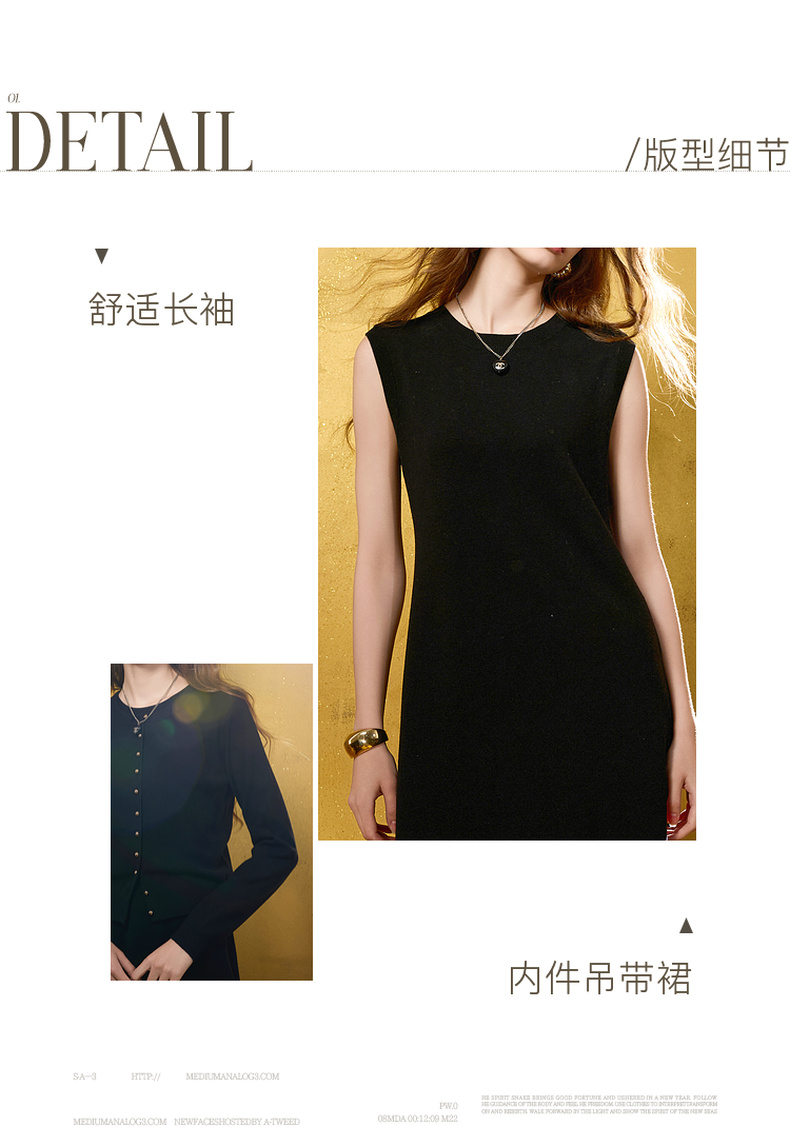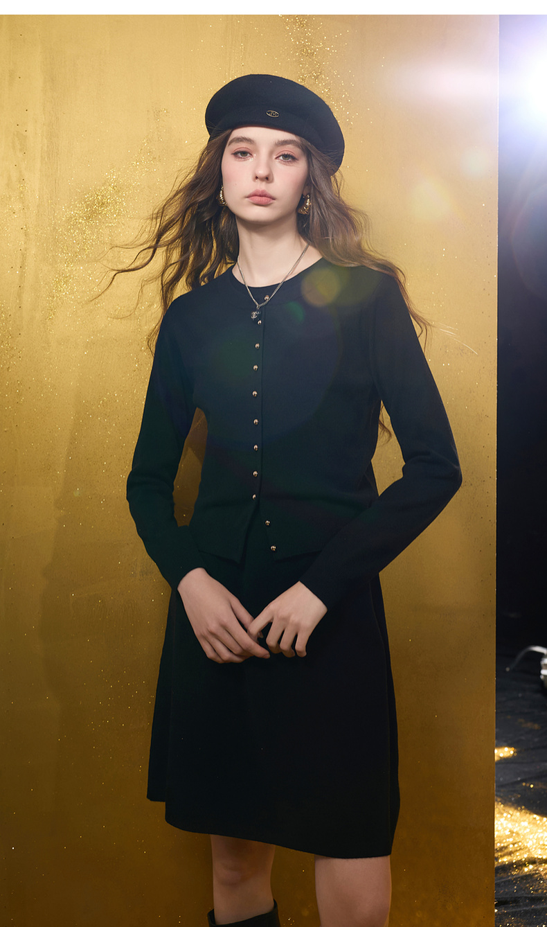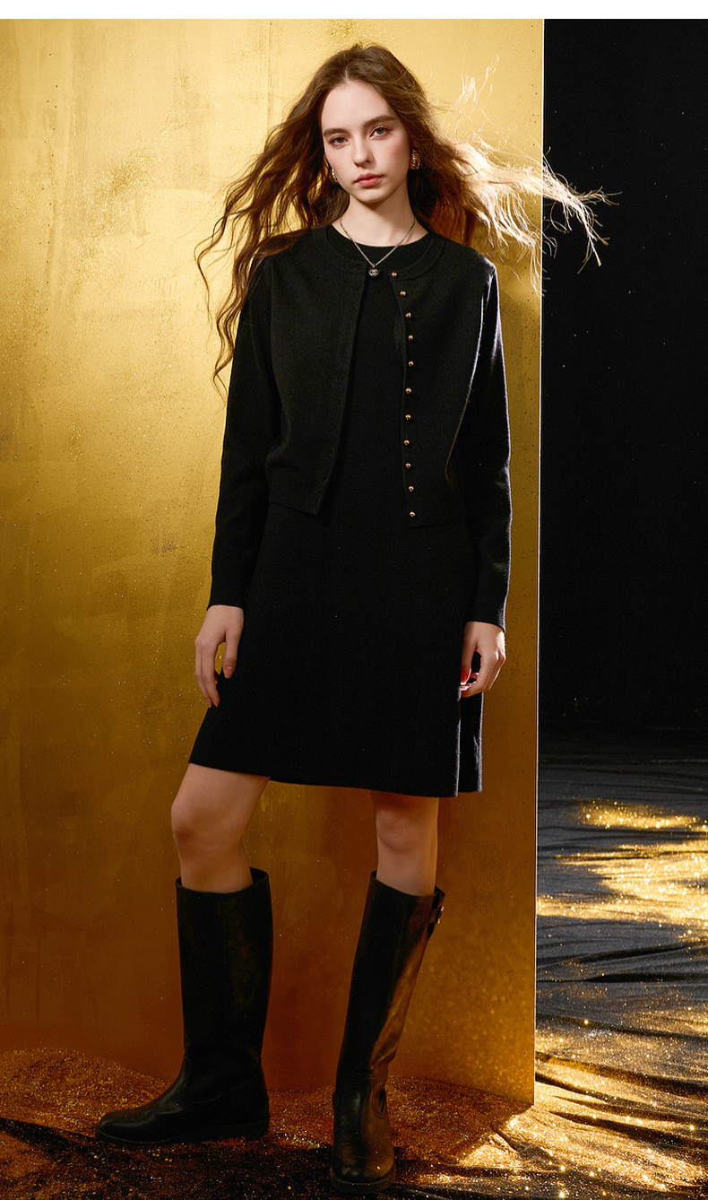 三彩2025冬季新款针织裙套装背心裙短裙毛衫开衫两件套M