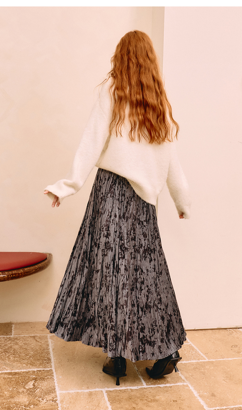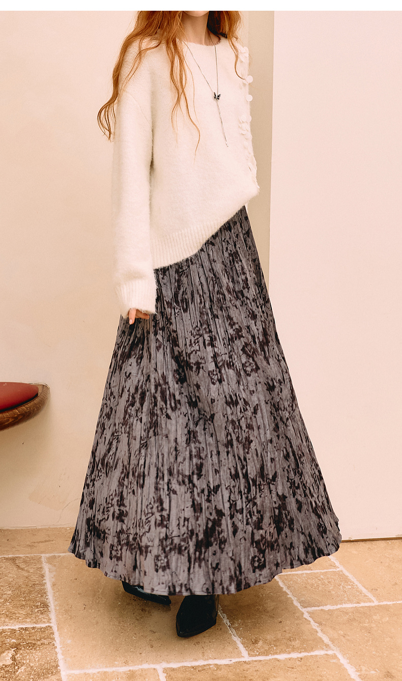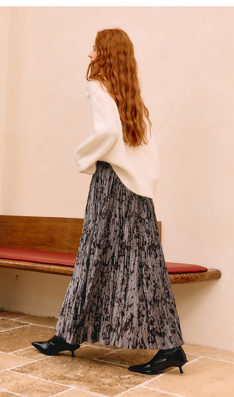 【梨型理想裙】三彩2025冬季新款印花丝绒半身裙高腰A字裙长裙M