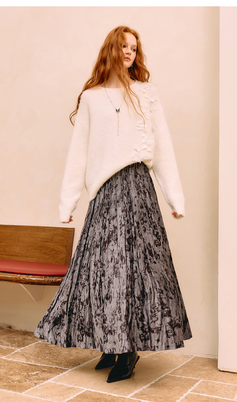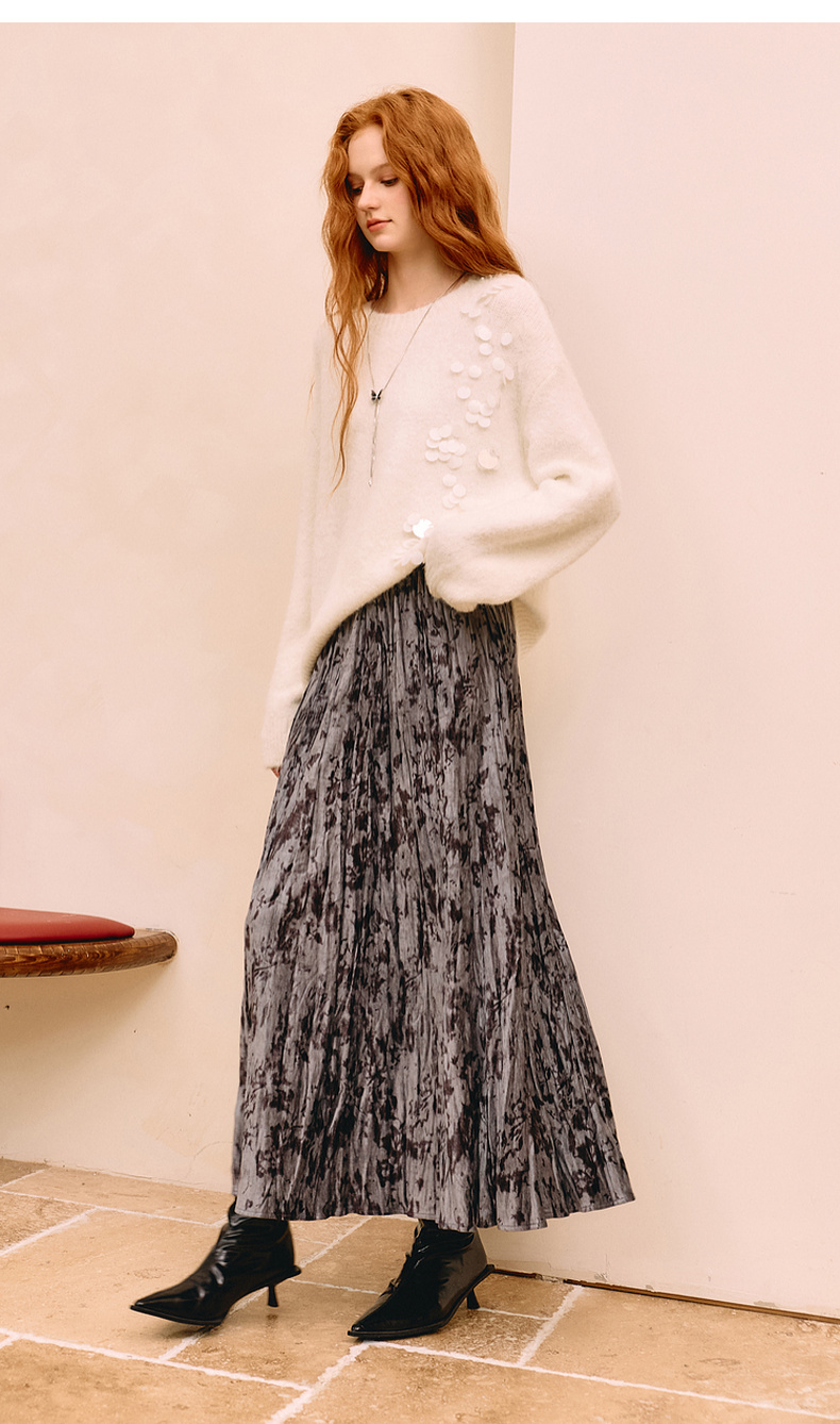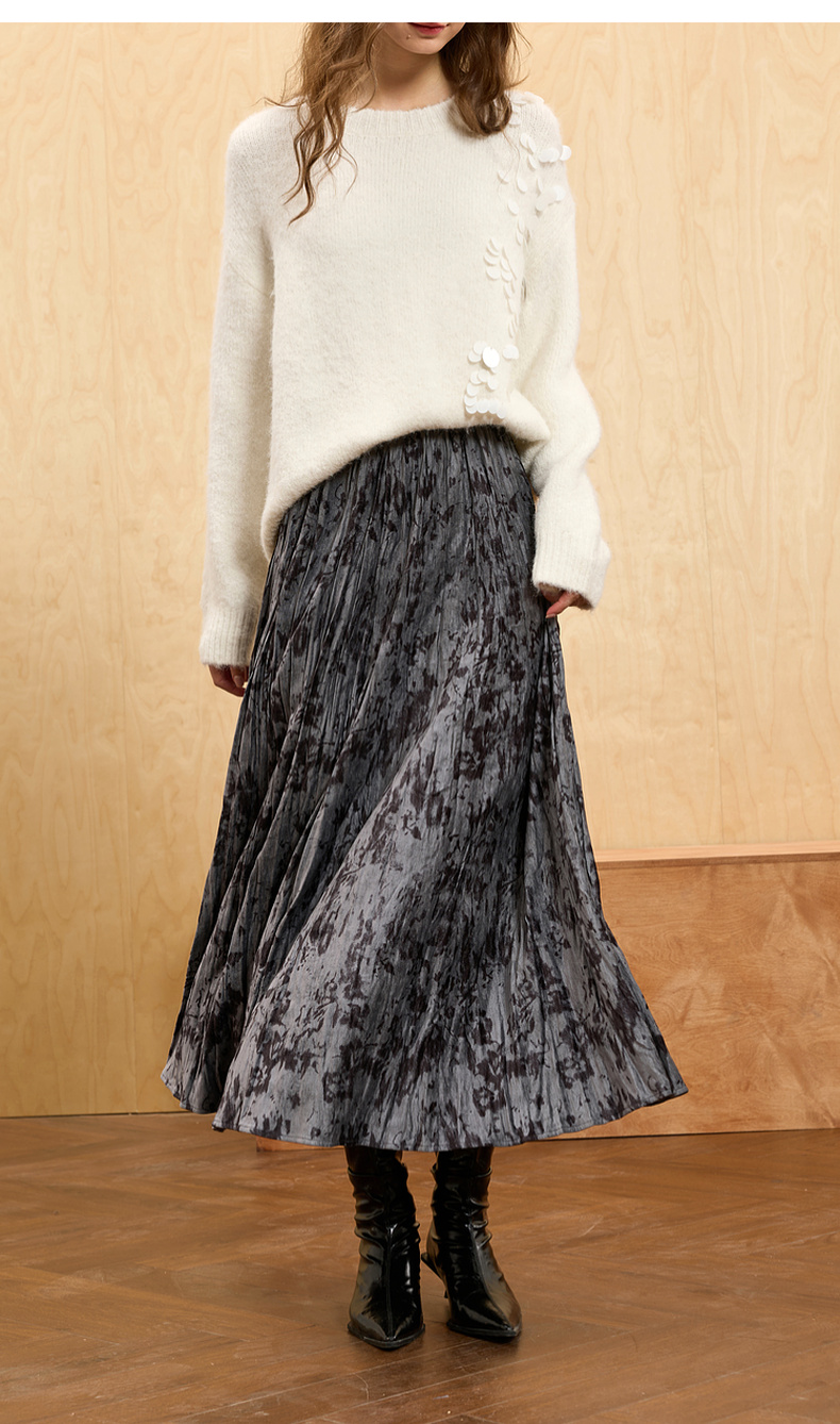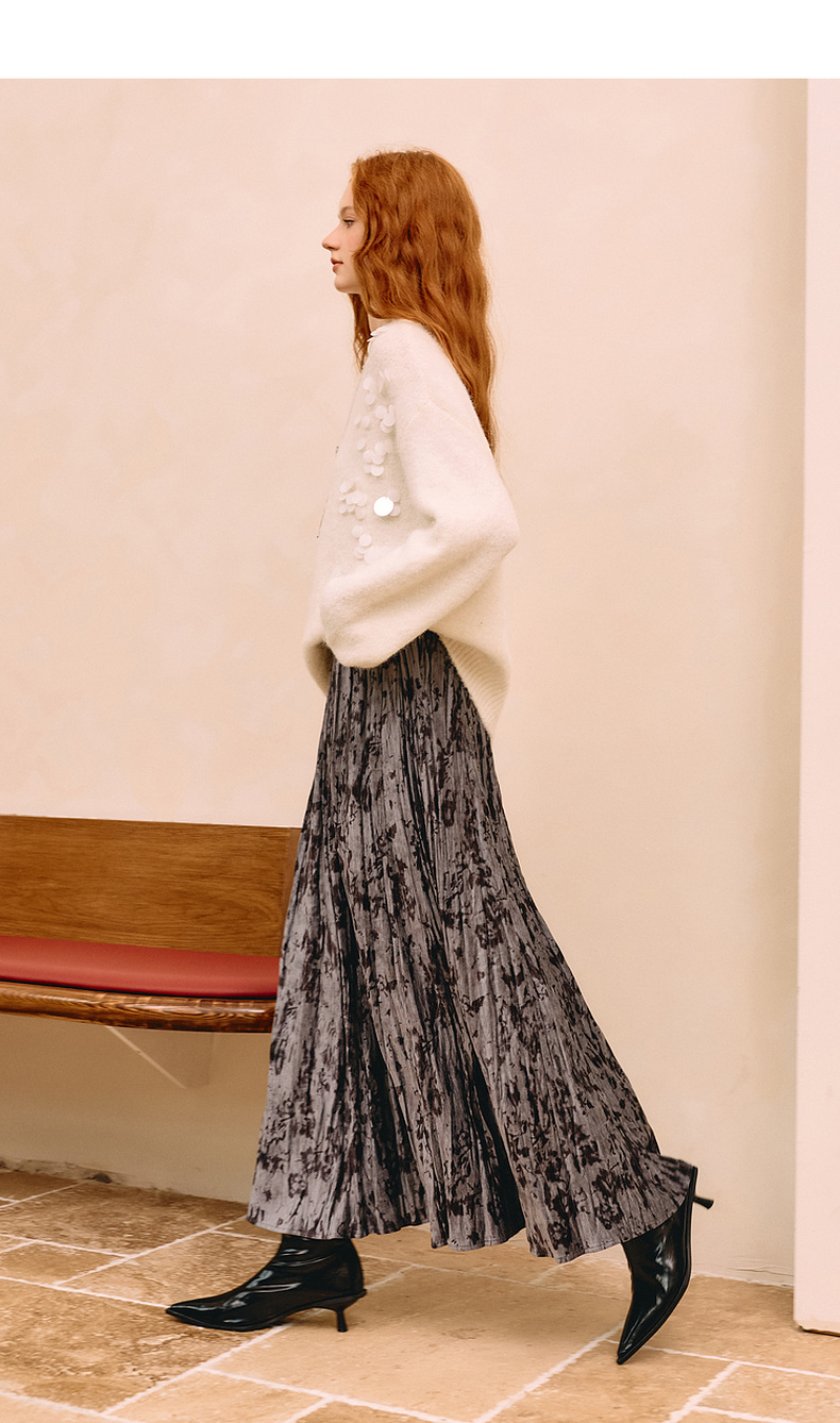 【梨型理想裙】三彩2025冬季新款印花丝绒半身裙高腰A字裙长裙M