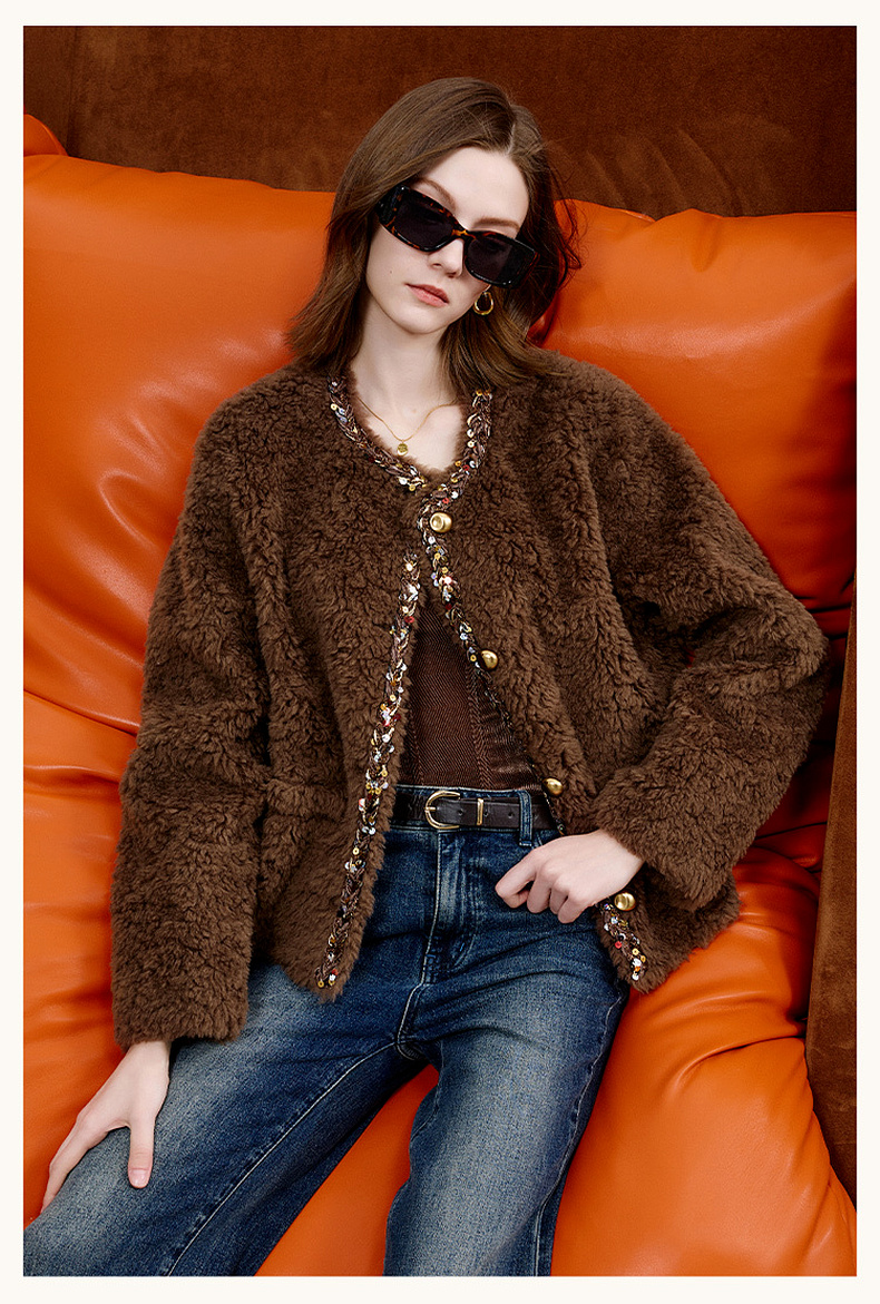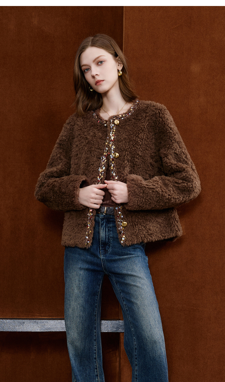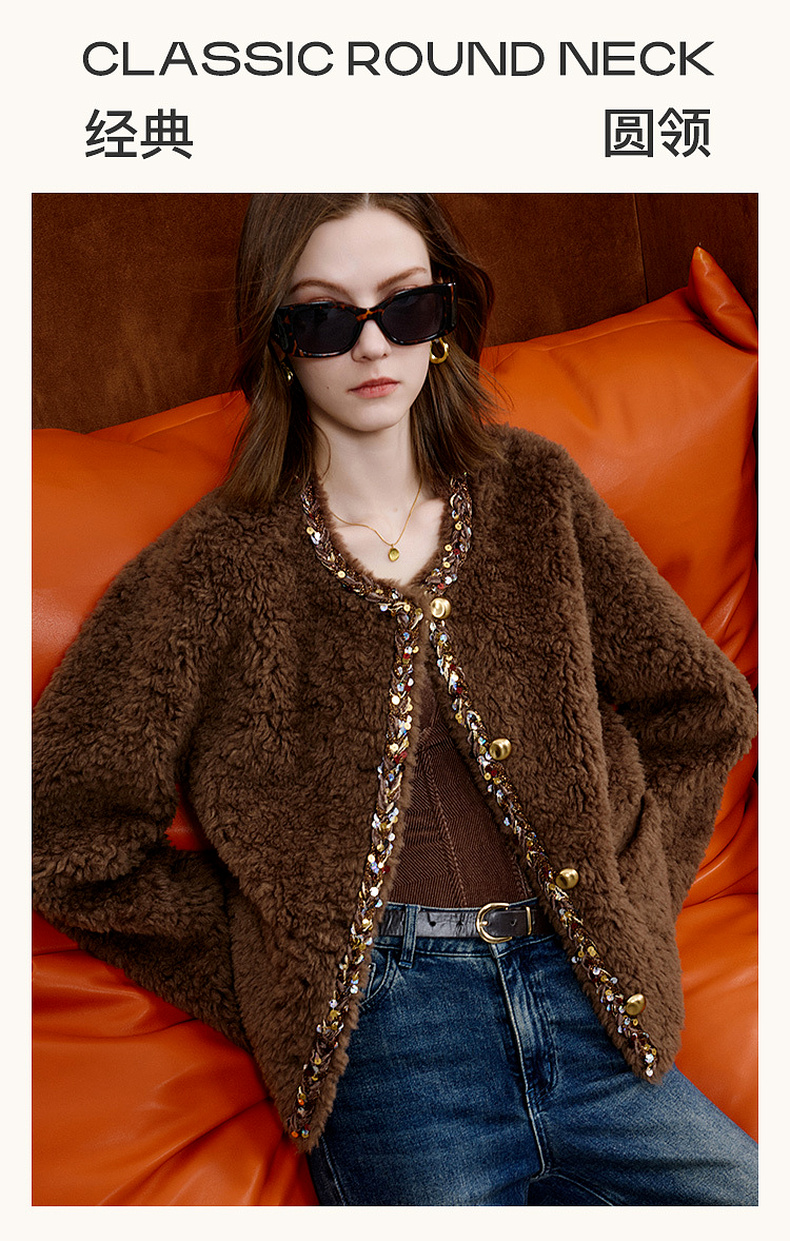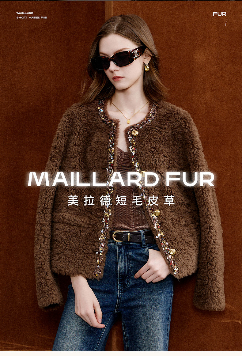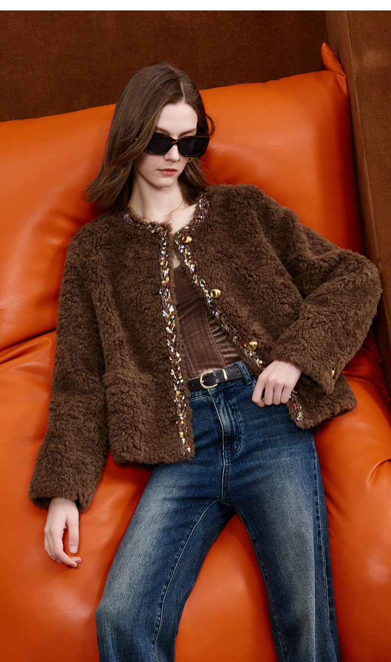 【瘦瘦系列】三彩2025冬季新款香风绵羊毛复合皮草毛毛外套保暖M