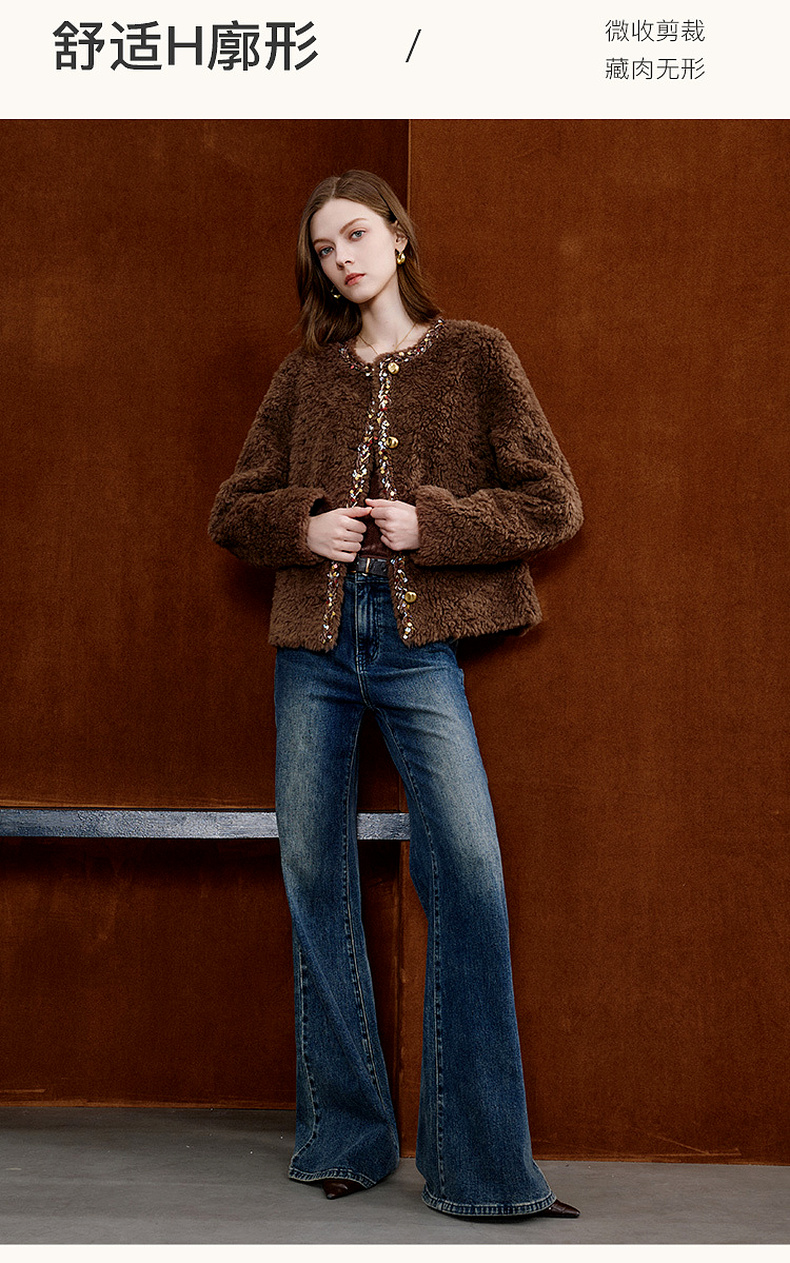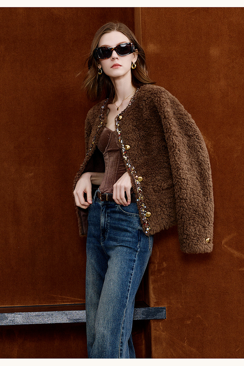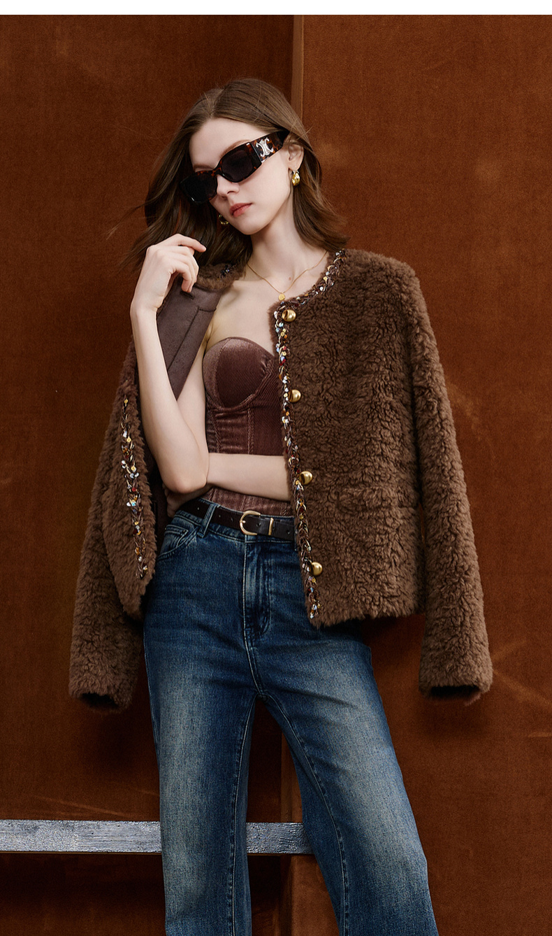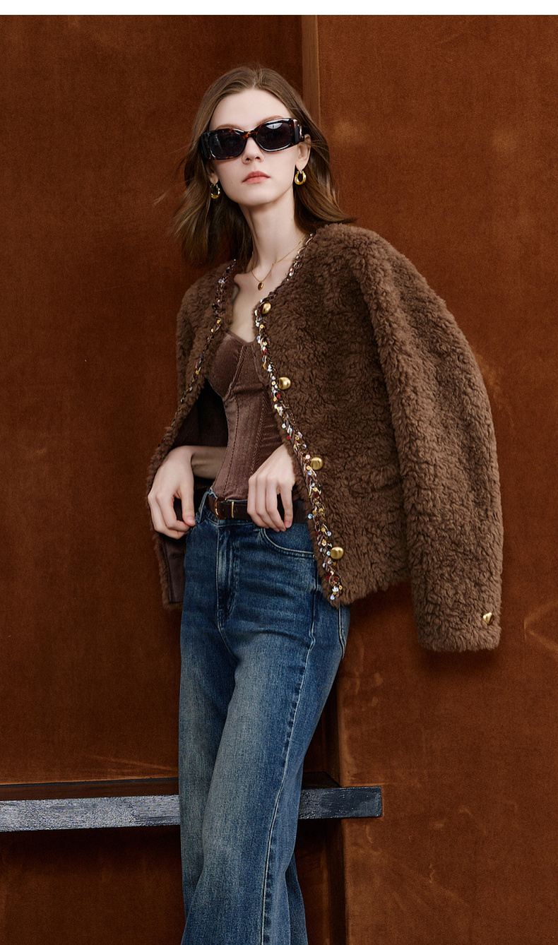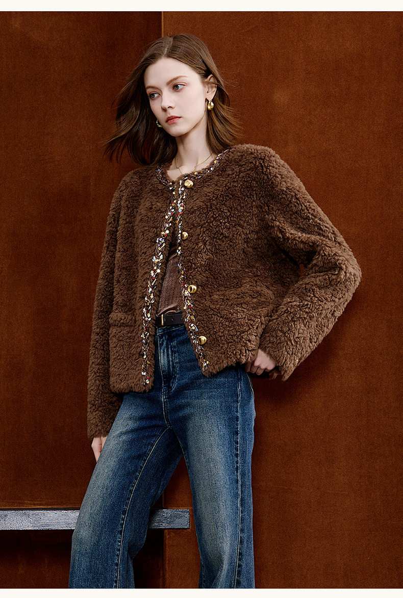 【瘦瘦系列】三彩2025冬季新款香风绵羊毛复合皮草毛毛外套保暖M