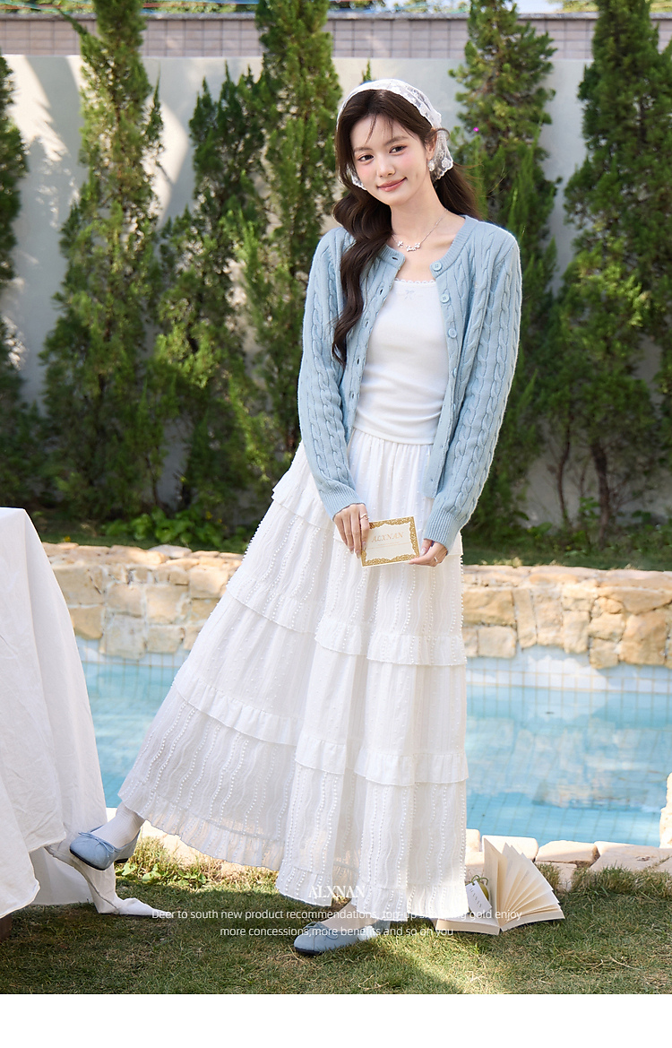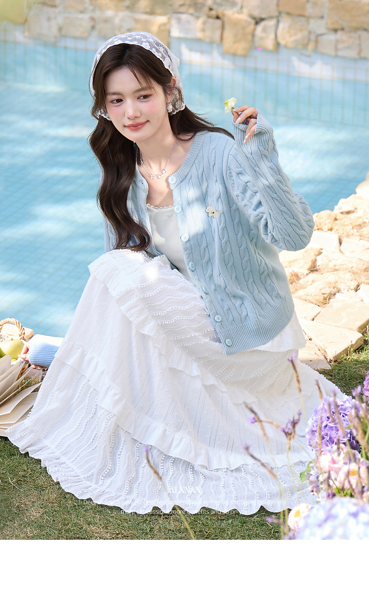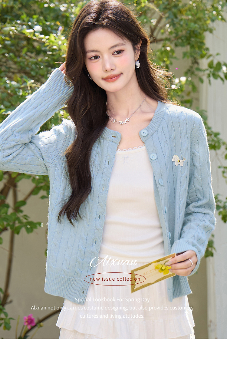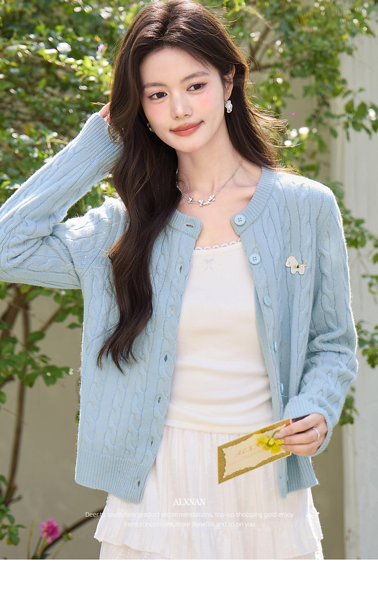 鹿向南「云涧织蓝」蓝色毛针织衫春季新款时尚温柔外搭开衫上衣女