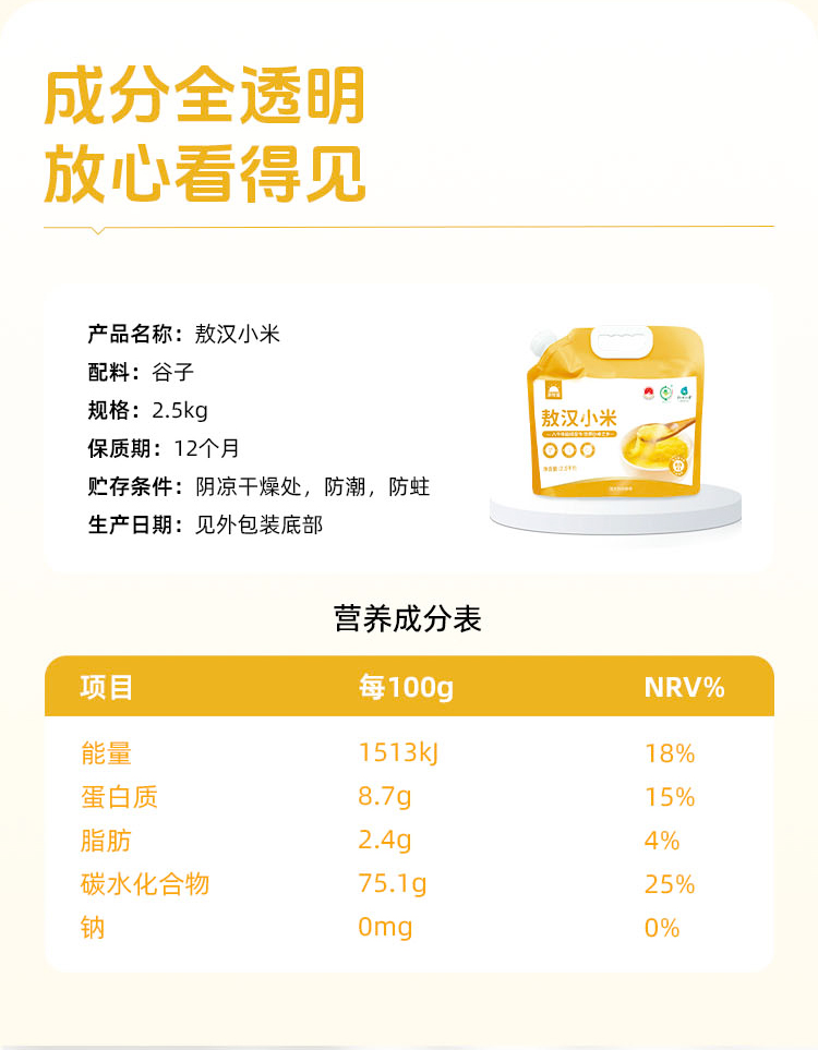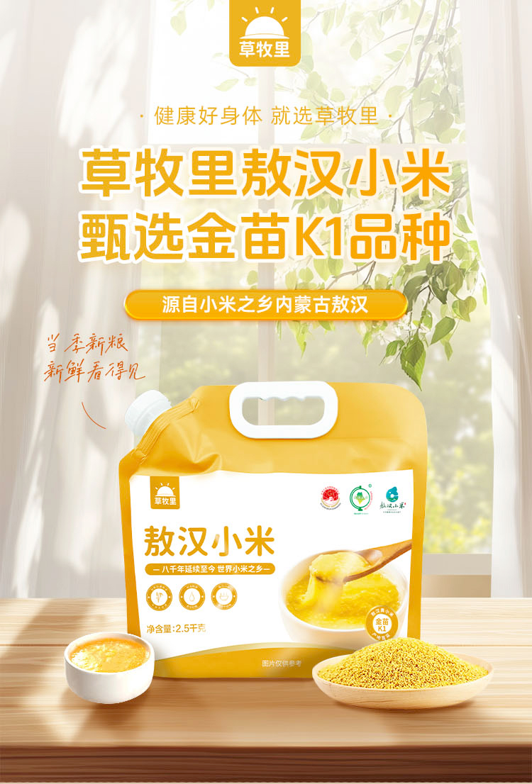 【色泽金黄】草牧里 敖汉小米 2.5kg/袋 香浓软糯易煮易熟(海南、青海、云南、新疆、西藏发圆通快递