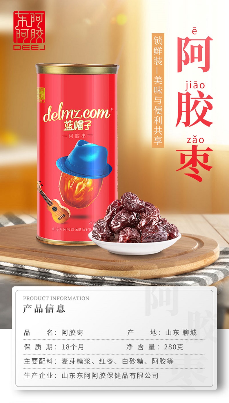 东阿阿胶蓝帽子阿胶枣280g×6罐礼盒装