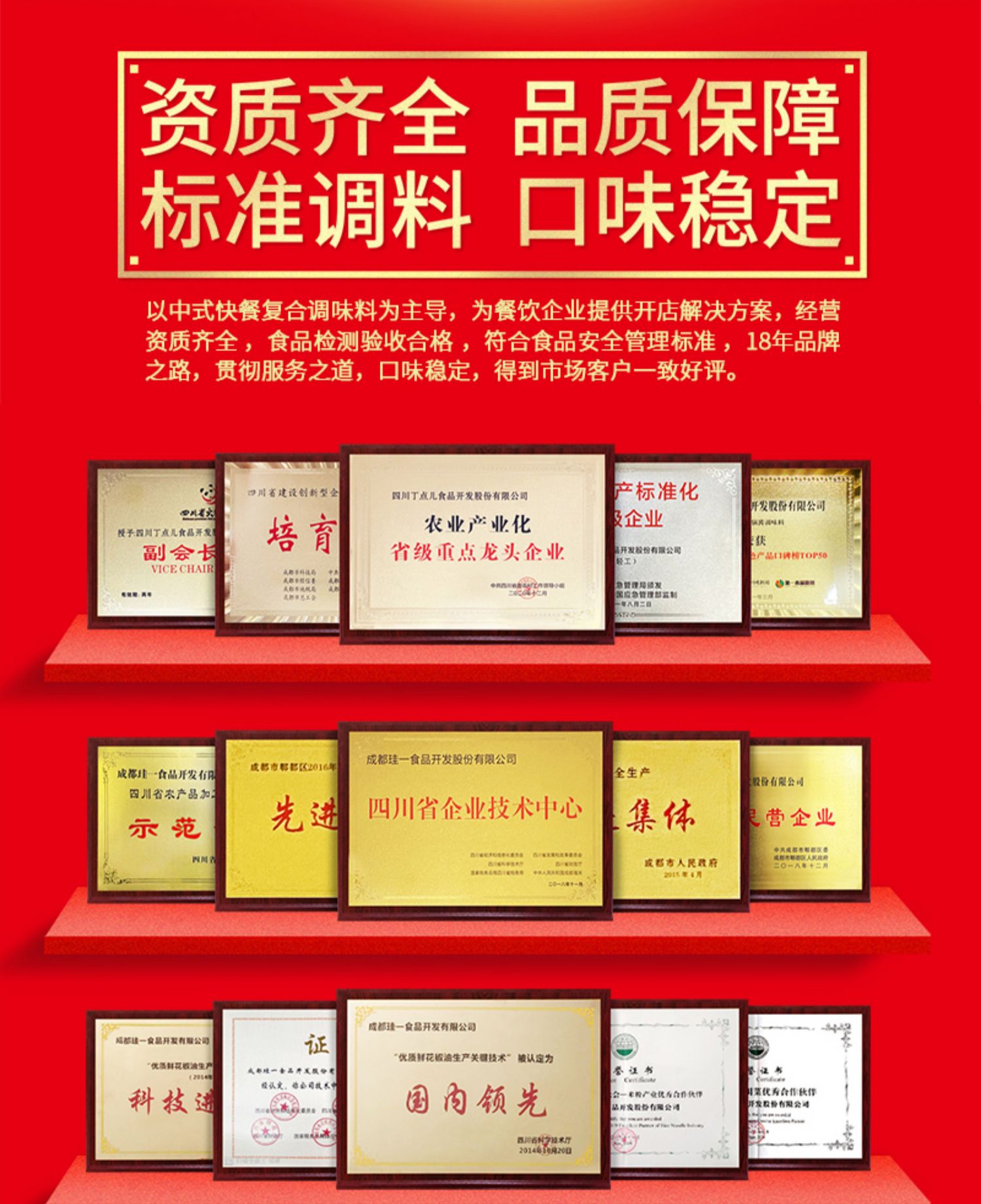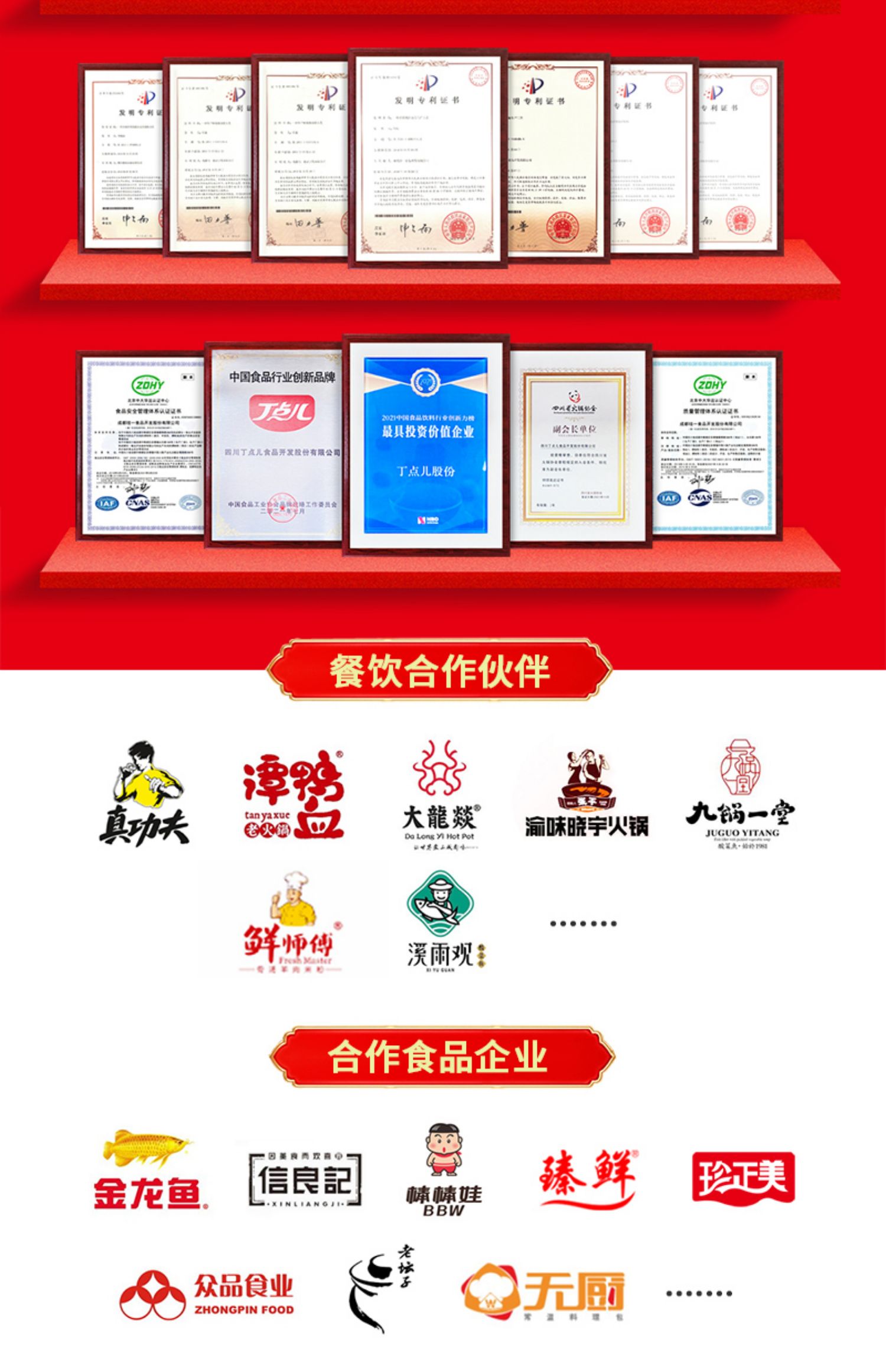 四川丁点儿食品开发股份有限公司,是集川菜调味料研发、生产、销售、服务为一体的现代化企业,专注为餐饮客户提供川菜调味解决方案。公司成立至今,服务了超百万家的餐饮门店以及连锁品牌。