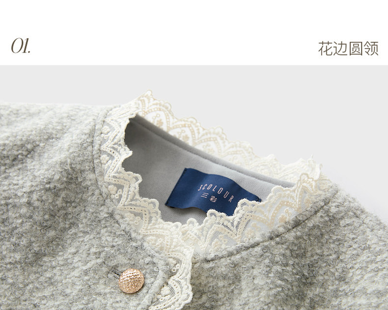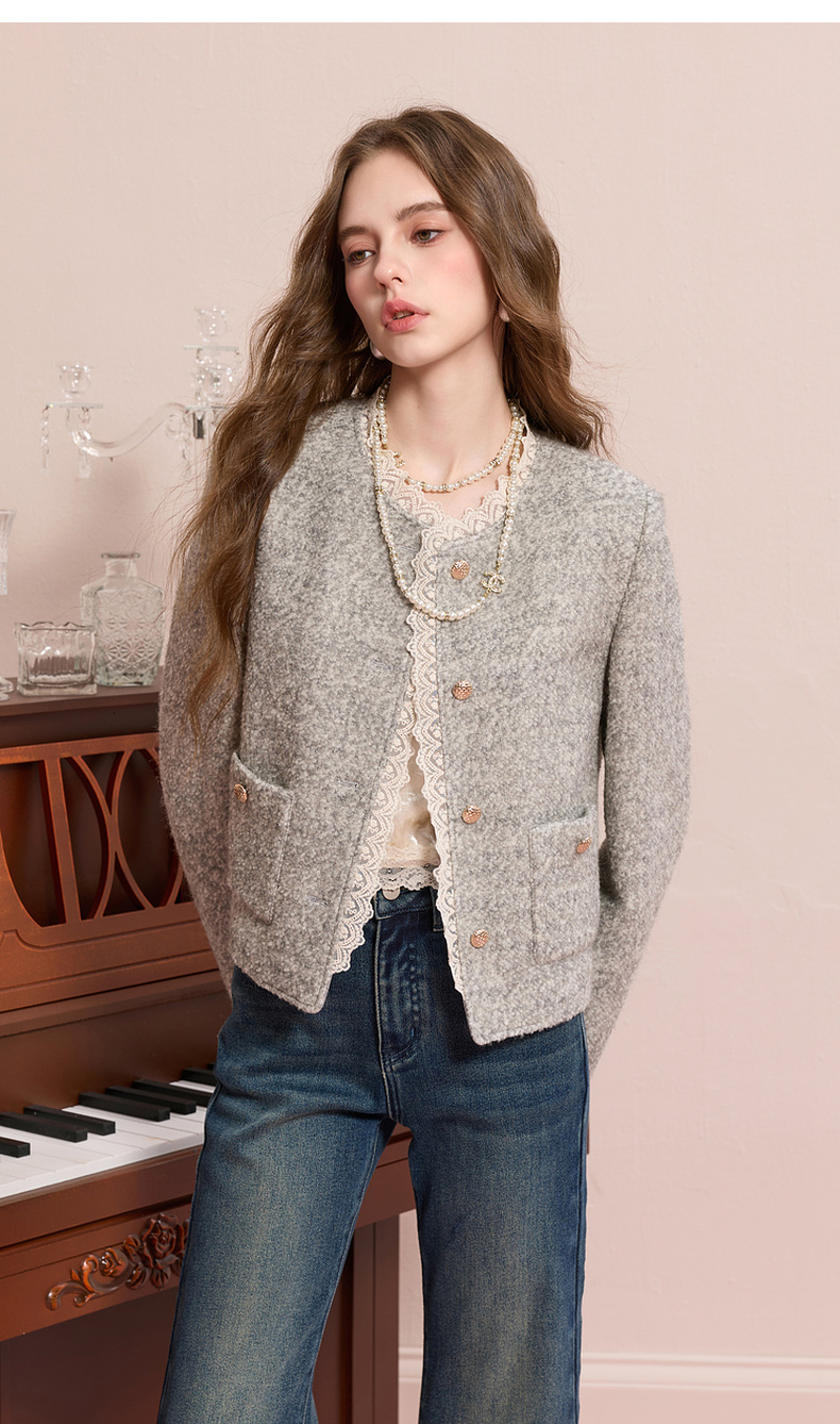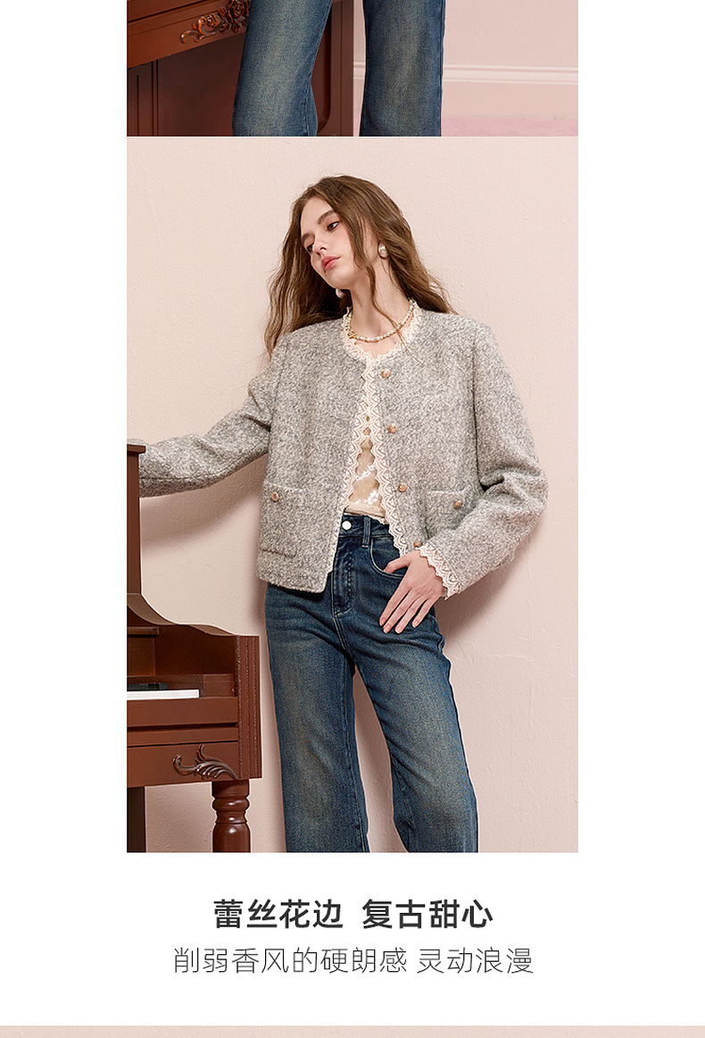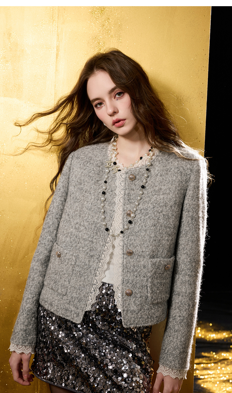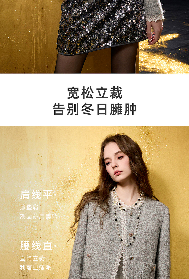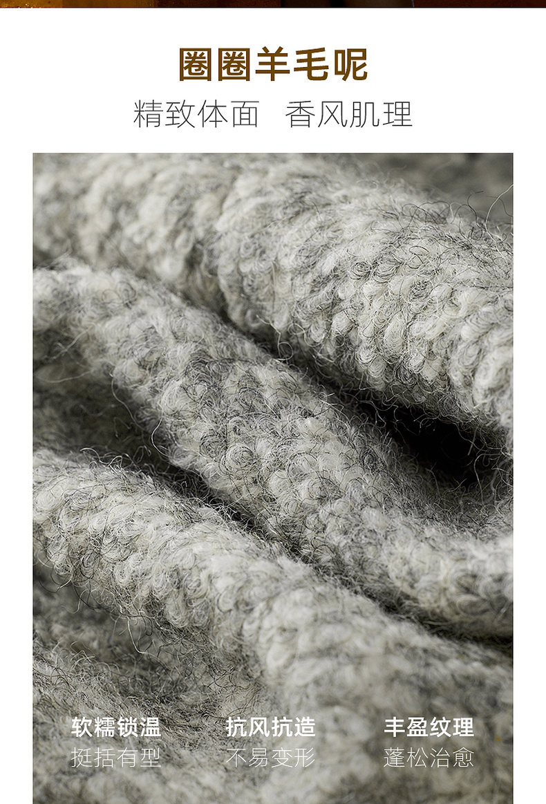 【绵羊毛】三彩2025冬季新款香风毛呢外套圈圈呢加棉短大衣保暖M