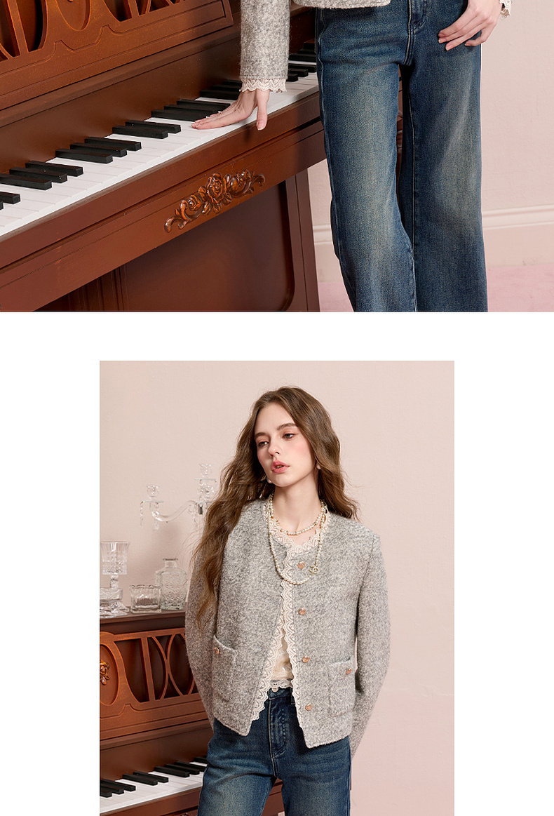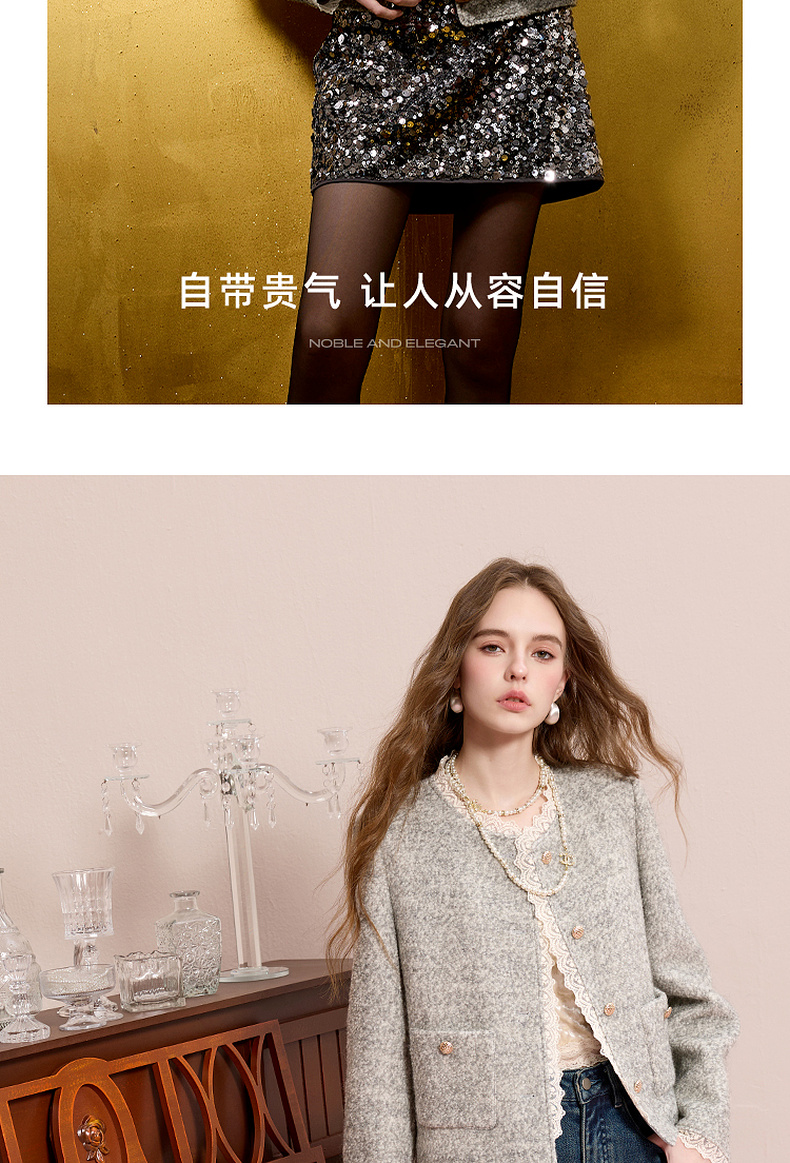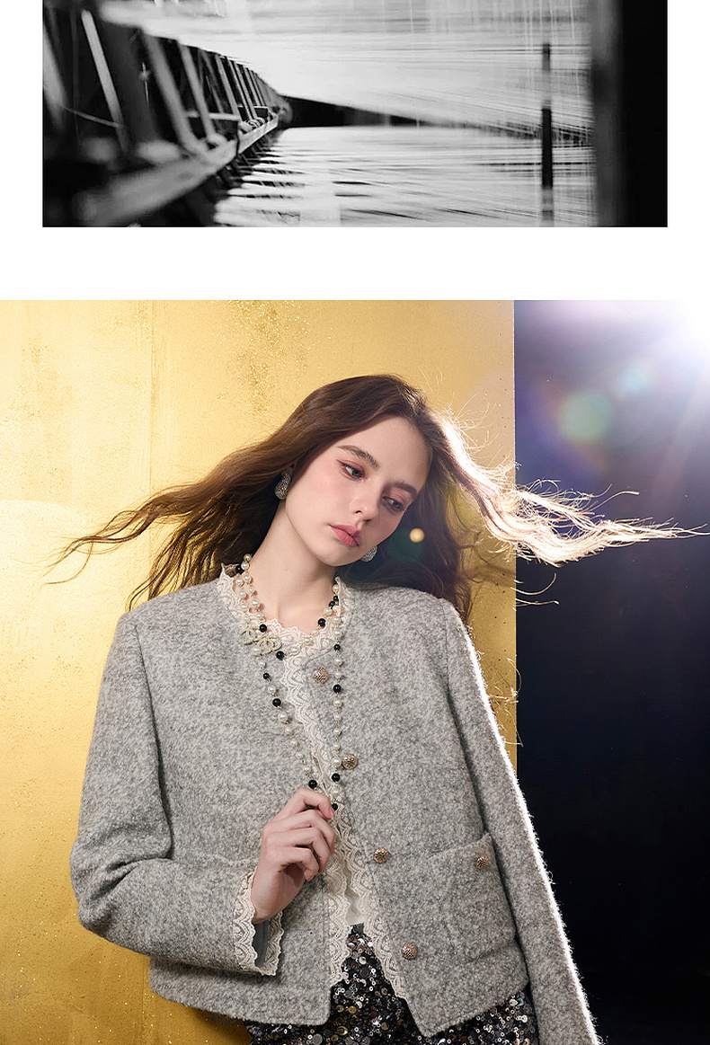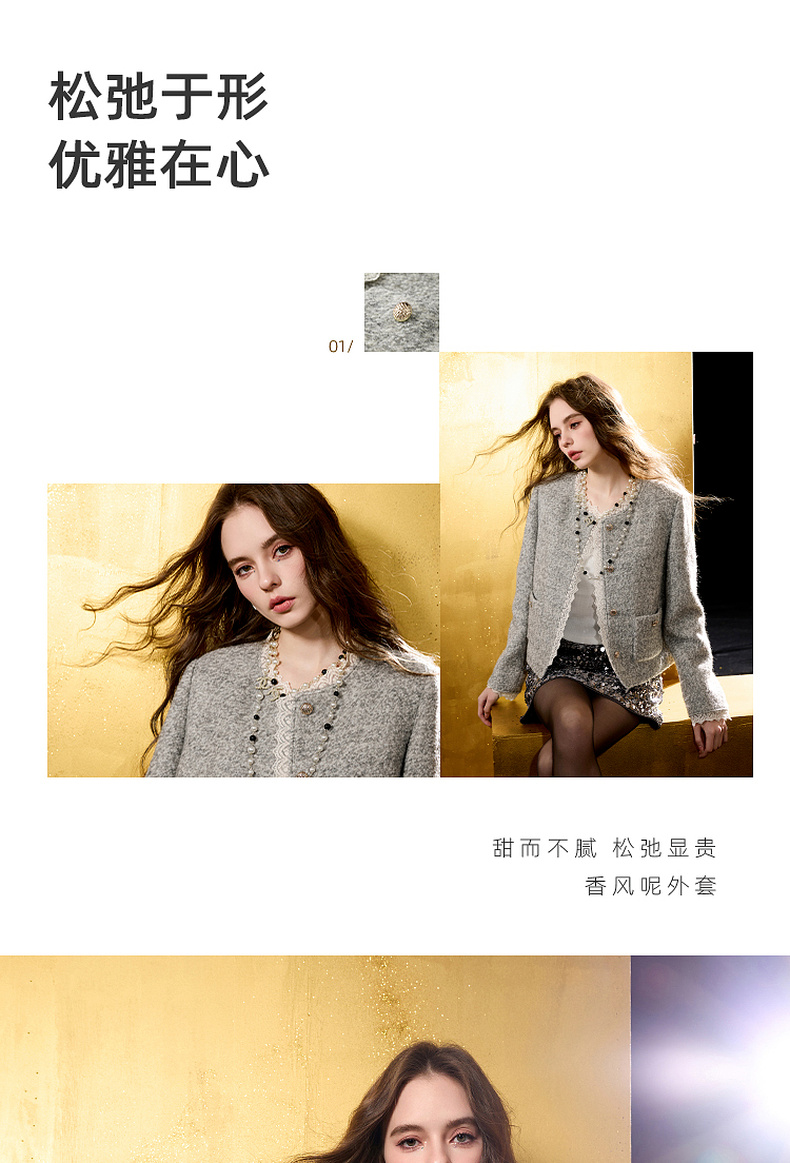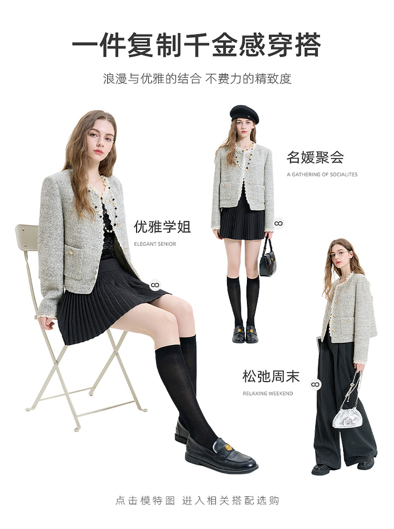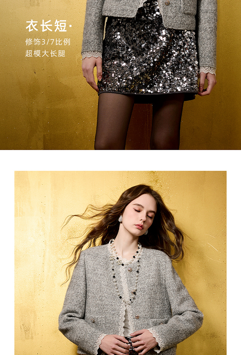 【绵羊毛】三彩2025冬季新款香风毛呢外套圈圈呢加棉短大衣保暖M