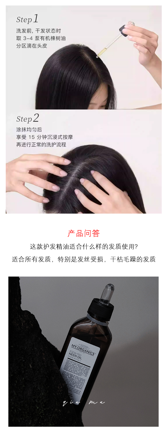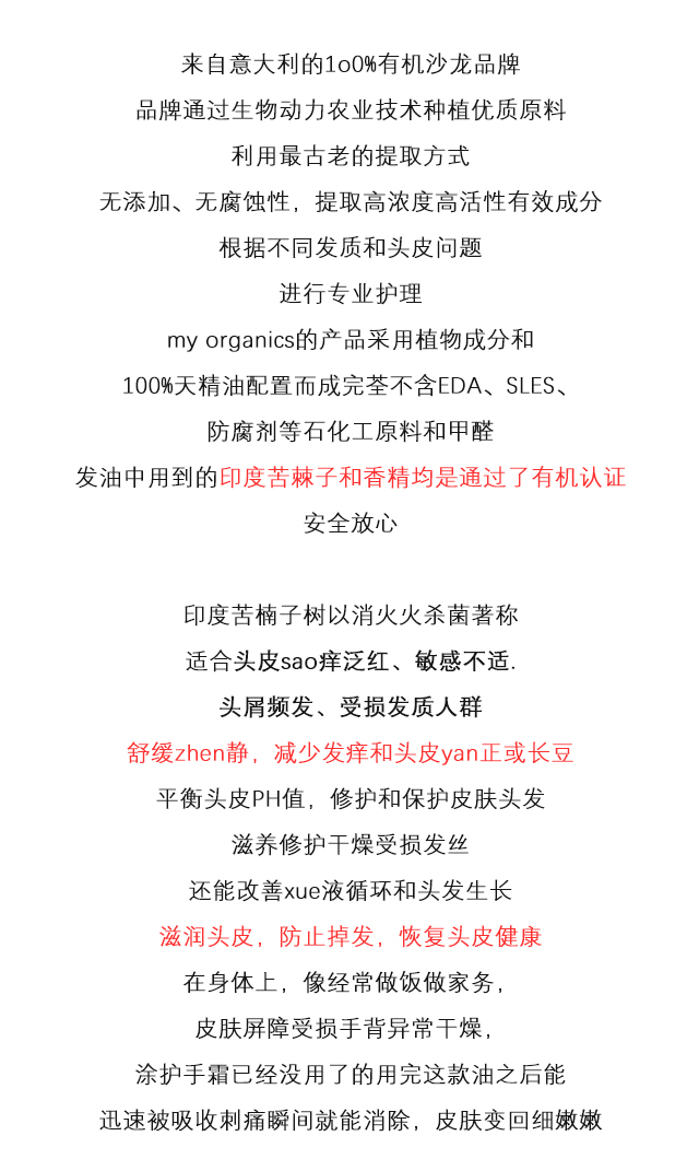 my.organics有机苦楝子油护发精油100ml滋养头皮舒缓敏感蓬松发根