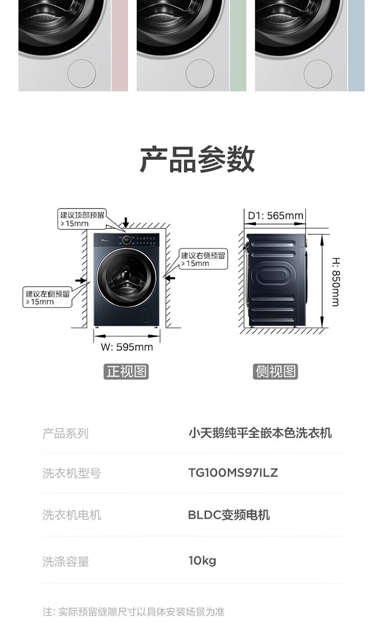 【限天津区域】小天鹅/洗烘套装/TG100MS97ILZ+TH100-H97WZ
