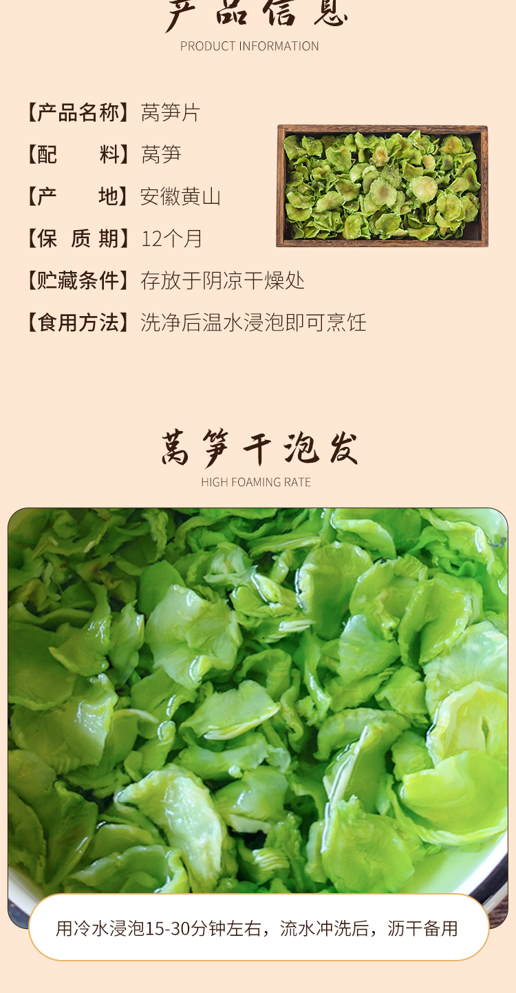 【徽香十里】莴笋干农家自制特产 干货菜类大全窝笋莴苣片100g