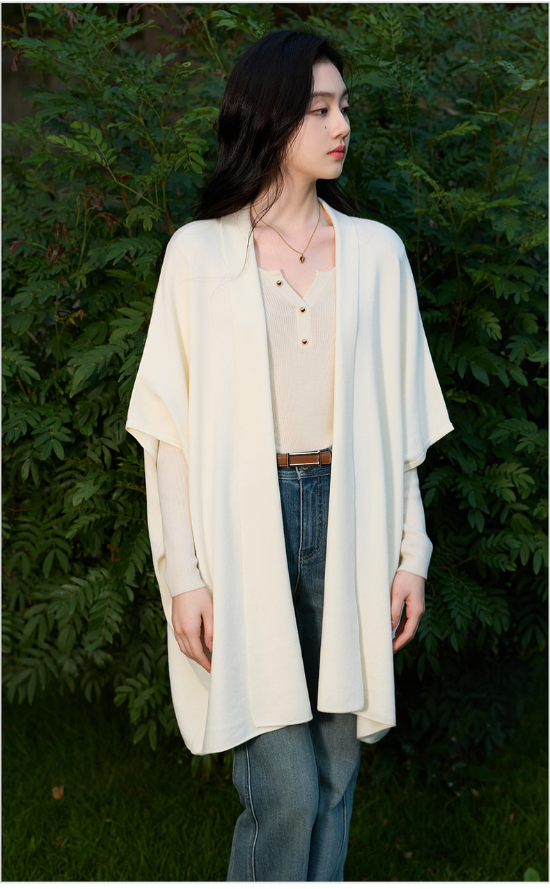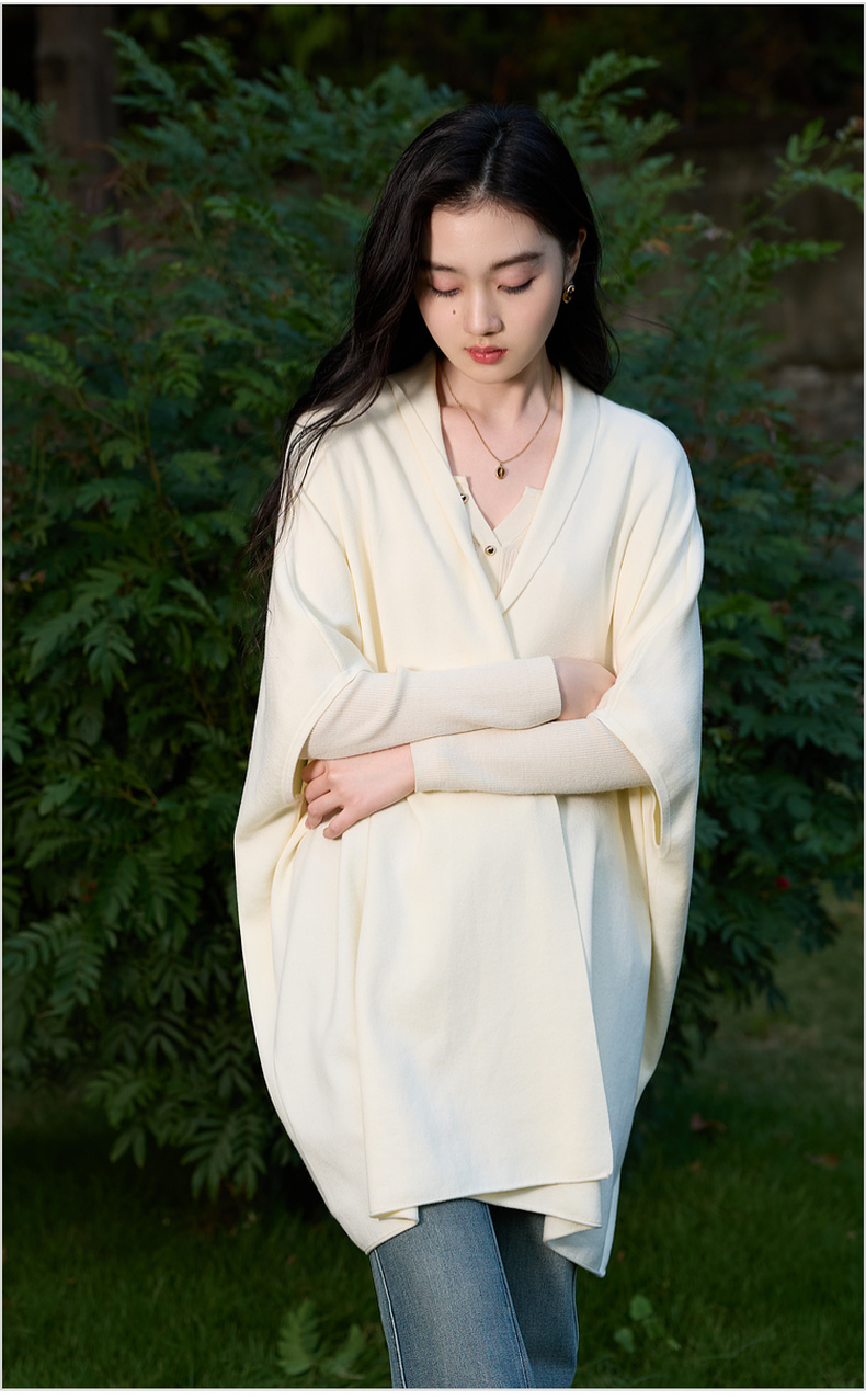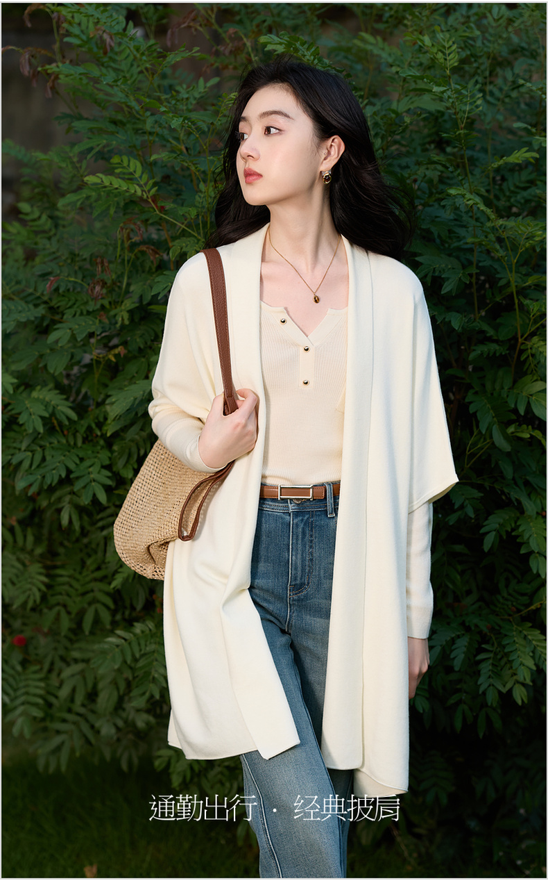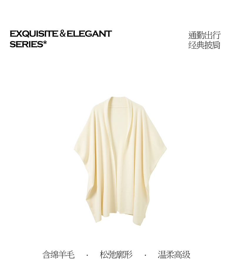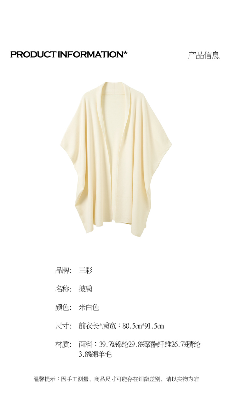 【绵羊毛】三彩2026新款米白宽松针织披肩外搭简约氛围感通勤女