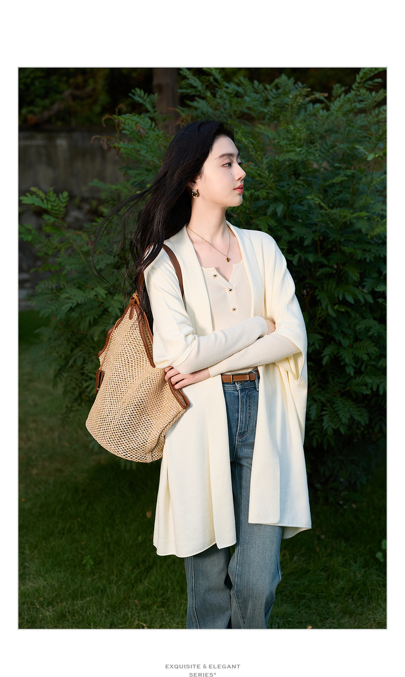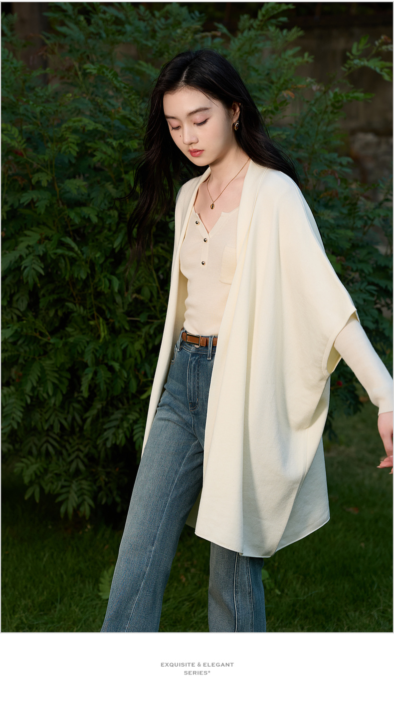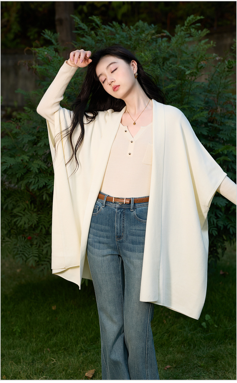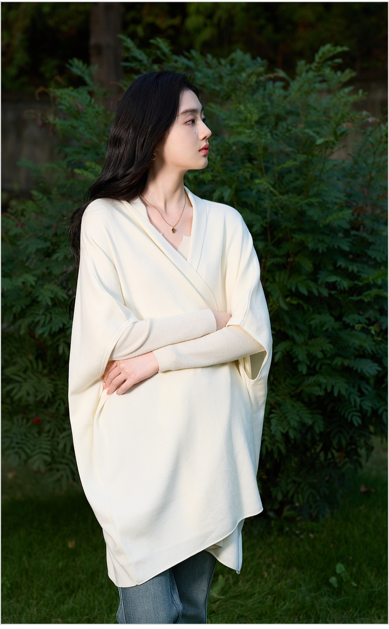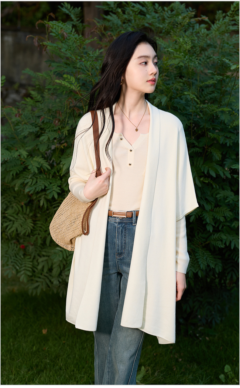 【绵羊毛】三彩2026新款米白宽松针织披肩外搭简约氛围感通勤女