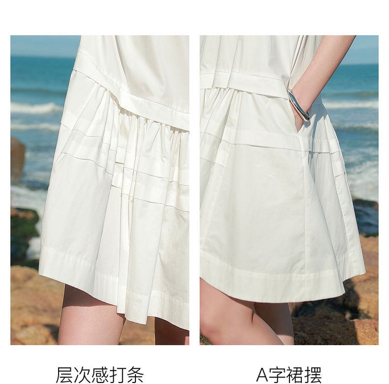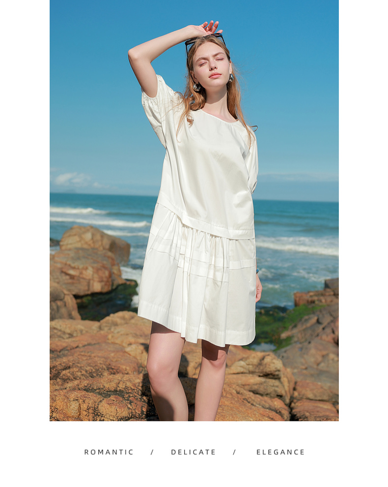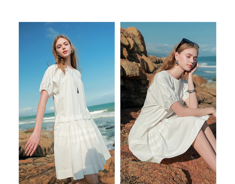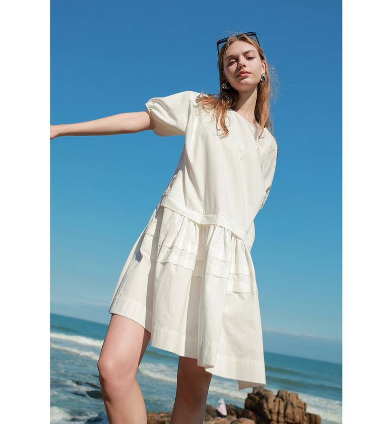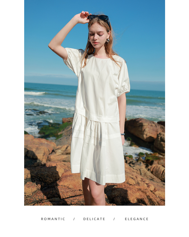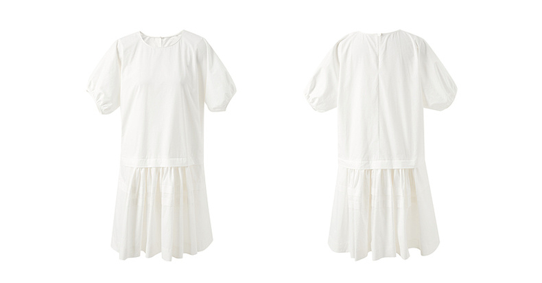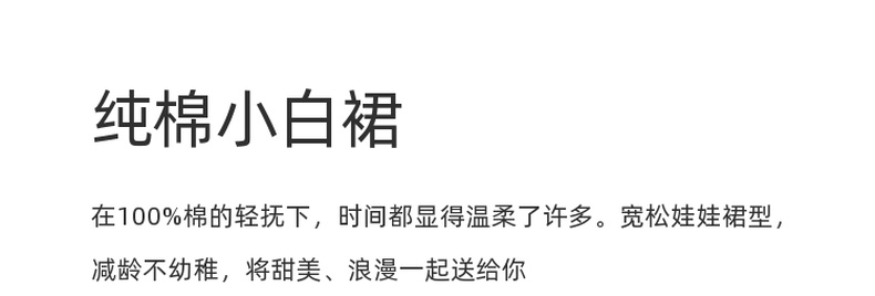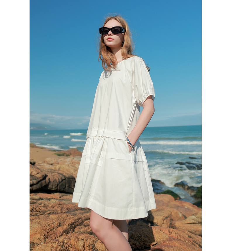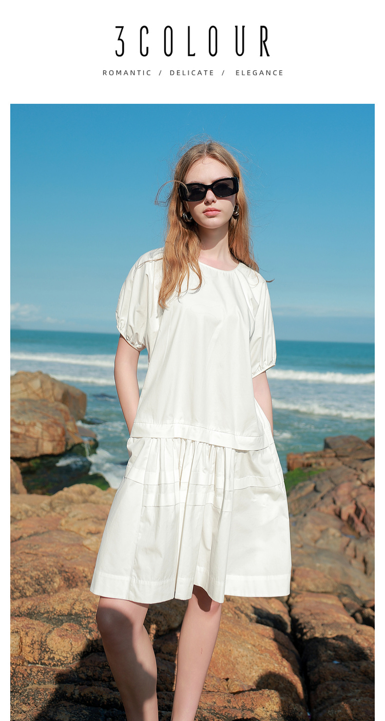 三彩2025夏季新款纯棉小白裙宽松娃娃裙圆领灯笼袖连衣裙中裙M