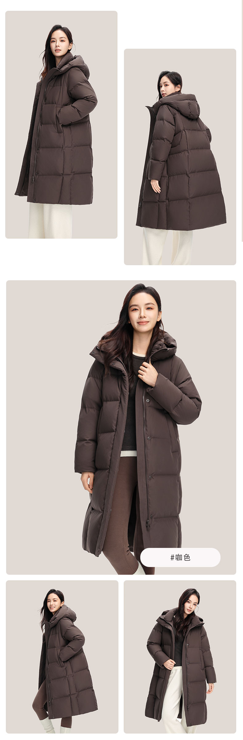 【女款】个调 2025冬季新款羽绒服女宽松连帽长款过膝外套19033 尺码155-170 颜色米灰色、咖啡色、黑色