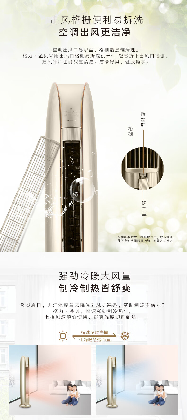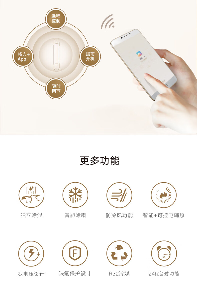 格力/空调/KFR-50LW/(50572)FNhAe-B1(WIFI)(奢华金)/金贝变频冷暖2匹1级能效220V/50Hz柜机空调圆柱式
