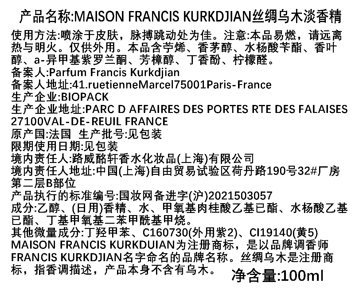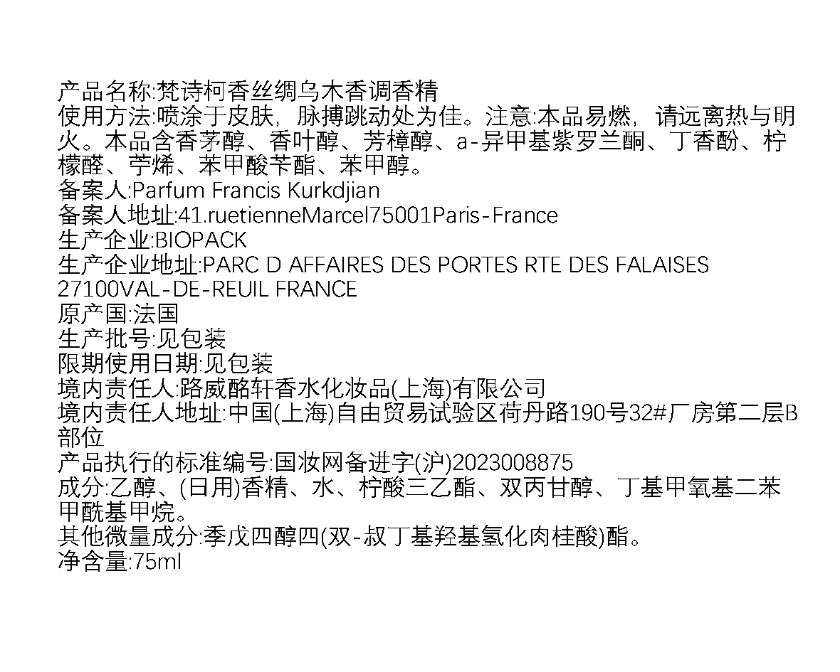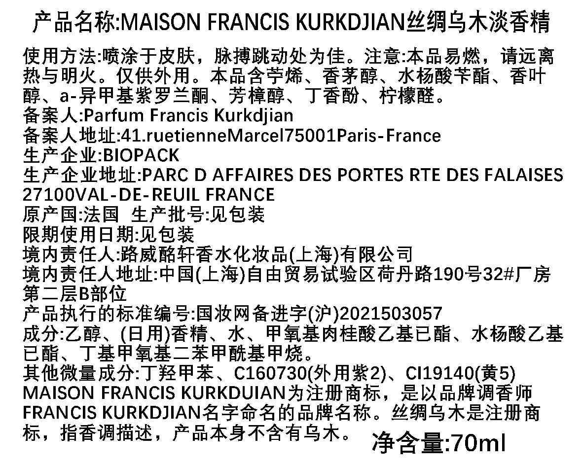MFK梵诗柯香 OUD silk mood/乌木丝绸香水