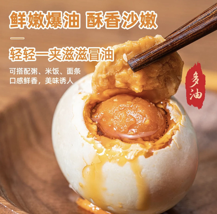 最近,一款“富的流油”的美食风靡一时🔥 🥚一颗大姆山富硒咸鸭蛋🟰蟹黄口感的蛋黄➕不齁咸的蛋白! 能吃出✅蟹黄味道的咸鸭蛋,真的不服不行 【大姆山特大流油富硒咸鸭蛋】 筷子一戳就流油的轻盐正宗散养麻鸭富硒咸鸭蛋❤ 吱一下红油就冒出来💦💦 塞入口中感觉酥爽咸香,松沙可口!😋 平时难以下咽的白粥,配上一口鲜、细、嫩、油的咸鸭蛋,简直是人间美味~🔥