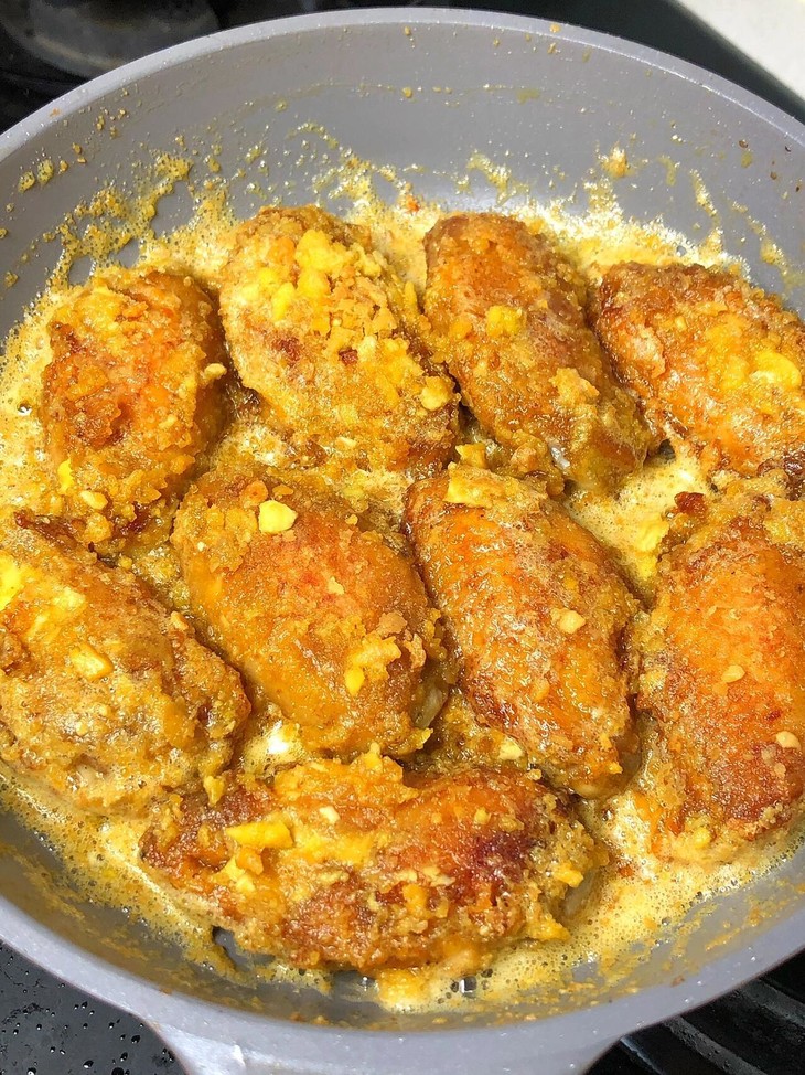 除了配粥!配饭!配面条‼️ 挖出蛋黄做一道咸蛋黄鸡翅也非常美味 又沙又香,外酥里嫩的口感 真的让人欲罢不能啊~