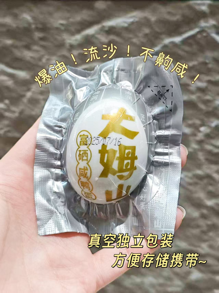 这一口流油的快乐我不允许还有人不知道 大姆山富硒咸鸭蛋简直是美食界的 “隐藏王者”! 一口下去,沙沙的咸蛋黄裹着红油 香到天灵盖起飞! 口感暴击,一口沦陷 咸蛋黄的绵密细腻,带着恰到好处的咸香 沙沙的颗粒感在舌尖化开 流出来的红油香得直迷糊!蛋白咸鲜 Q 弹 配粥、配面、拌饭都绝了 一口就把平凡的主食直接拉到 “米其林” 级别!
