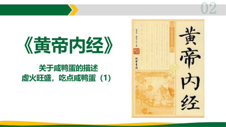 咸鸭蛋,又叫青皮,青蛋,盐鸭蛋,腌鸭蛋,在中国历史悠久,深受老百姓喜爱,营养丰富,咸香四溢,老少皆宜。 鸭蛋中的蛋白质的含量与鸡蛋一样,有强身健体的作用,矿物质的总量超过鸡蛋很多, 特别是身体所需的铁与钙在咸鸭蛋中更是丰富,对骨骼发育有善,并能预防贫血。 从中医上讲,咸入肾,腌制后更有滋阴养肾的功效。 煮食可治愈泻痢,其中咸蛋黄油有明目养眼的功效,还可治小儿积食,外敷可治烫伤,湿疹。