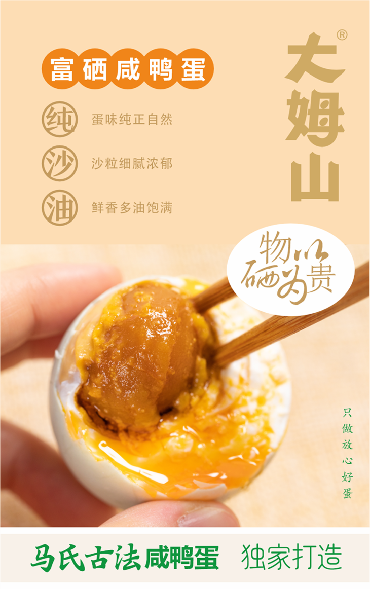 蛋品好的富硒鸭蛋➕马氏古法咸鸭蛋腌制工艺🟰大姆山特大流油富硒咸鸭蛋 大姆山马氏古法咸鸭蛋腌制工艺以其独特的制作方法和口感为当地美食著称。 在自古以来便是风景秀丽、人文荟萃之地的地域发展,传承百年之久,为鸭蛋使用到的配料等提供了得天独厚的自然条件。 正是在这样的环境中,孕育出了独具特色的大姆山古法咸鸭蛋腌制工艺, 大姆山马氏古法咸鸭蛋腌制工艺经过精心挑选的鸭蛋, 在古法的腌制下,呈现出深黄透亮的色泽,蛋壳光滑,蛋香浓郁。 切开后,蛋白柔嫩,蛋黄油润,咸香适中,保持着“起沙流油”的特色,令人回味无穷。 这一技艺不仅体现在对原料的挑选和处理上,更在于腌制过程中的精细操作和独特配方。