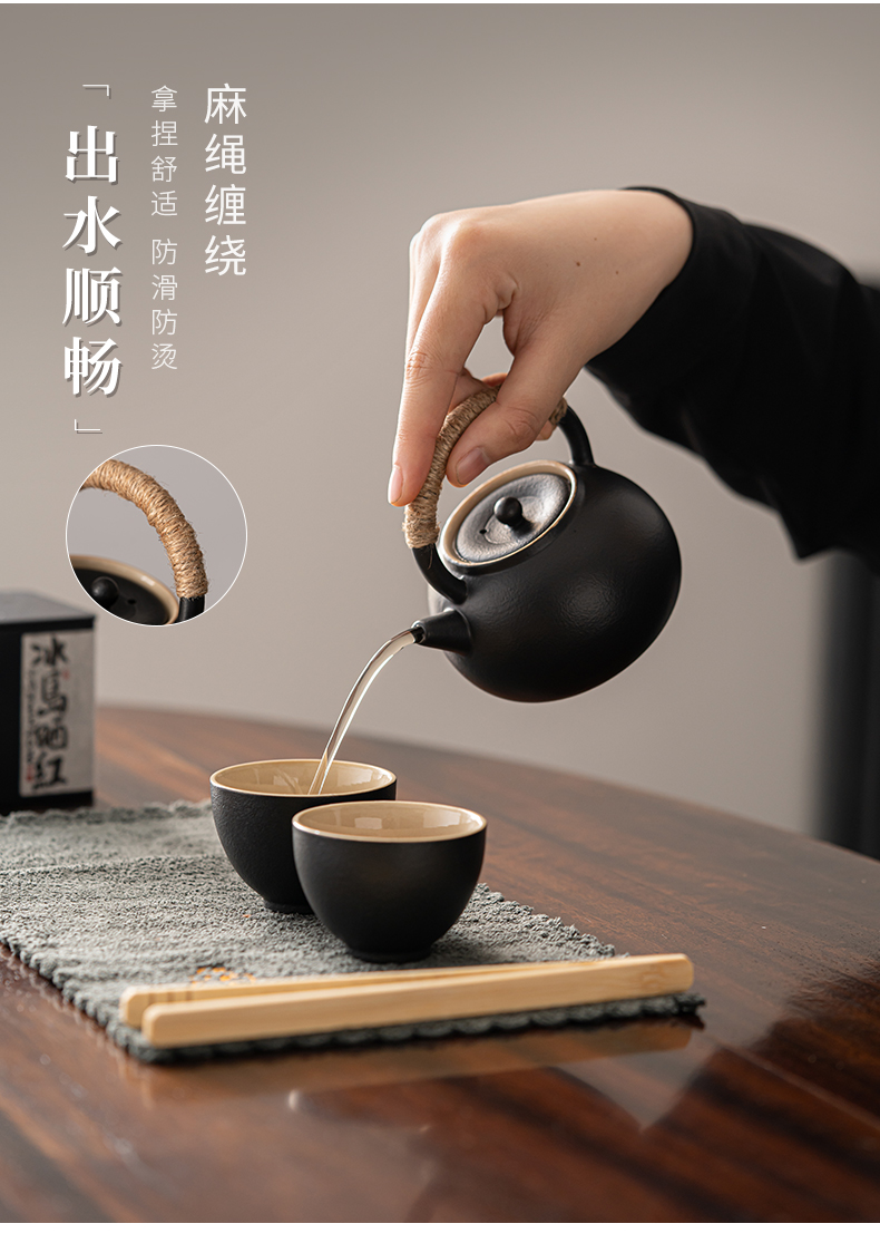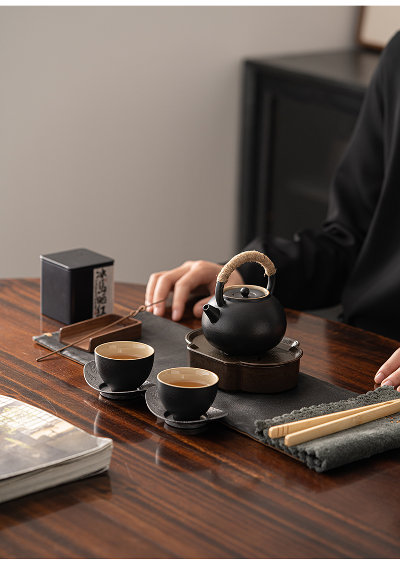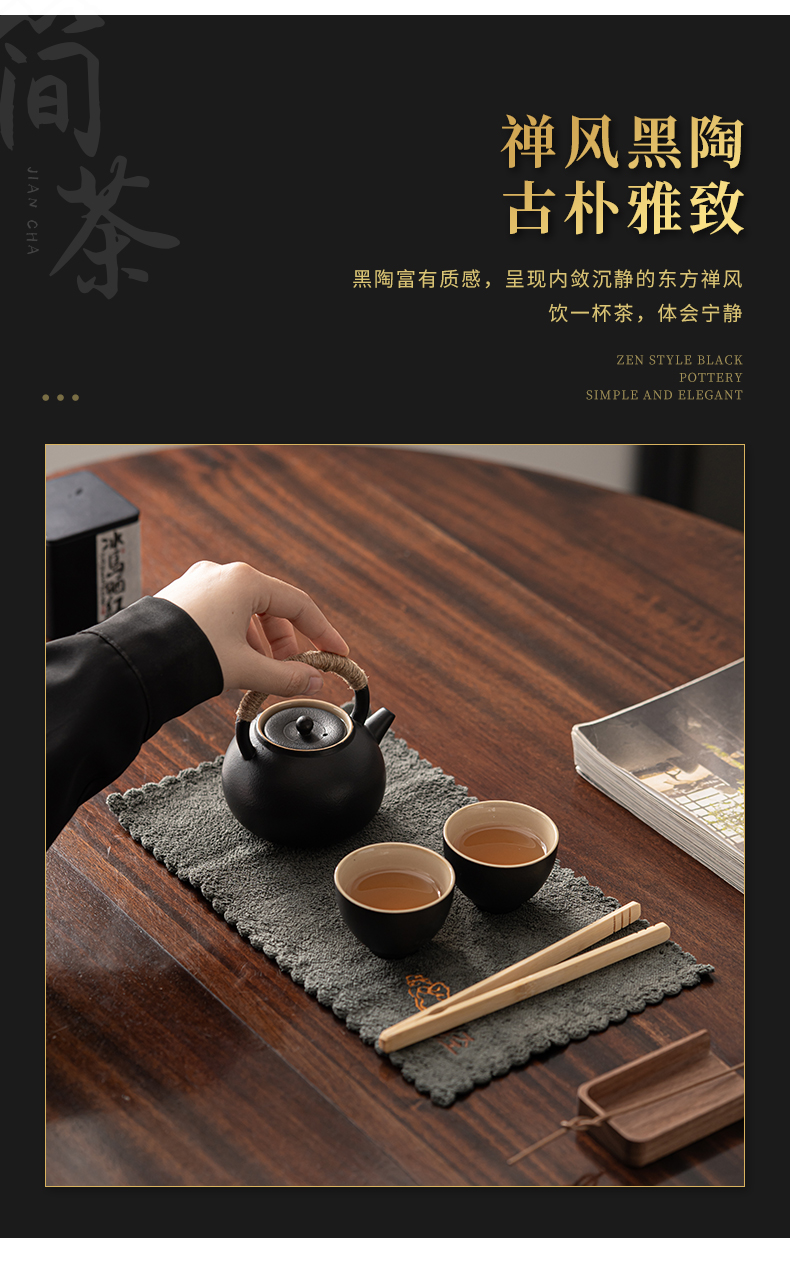 知者觉器简茶黑陶提梁壶5件套